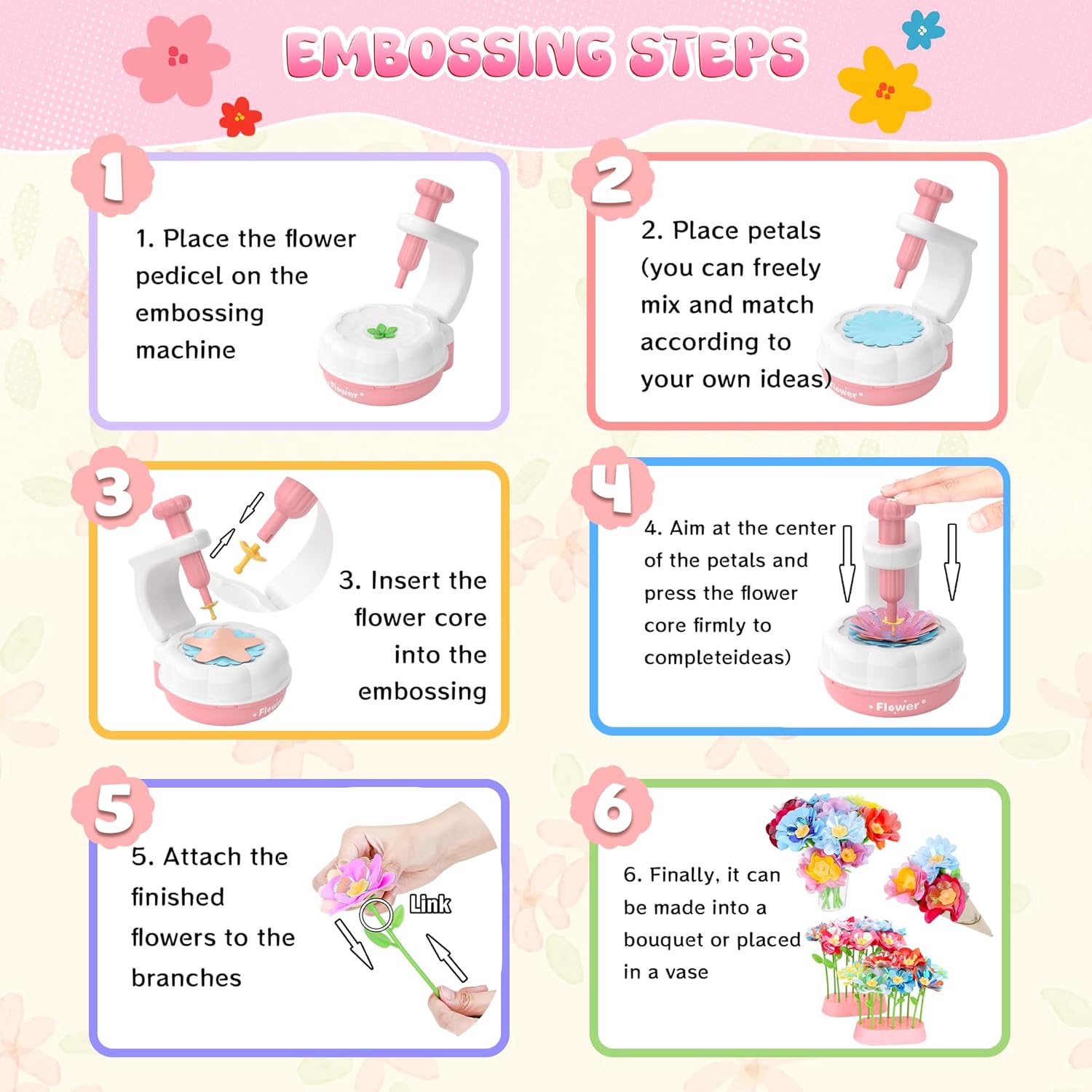 - 🎨【Super Doubled Accessories, Unlimited Creativity】 Say goodbye to monotony! Our DIY bouquet kit is equipped with 300+ pieces of exquisite accessories, which is more than twice the average model! There are embossing machines, petals, leaves, flower stems, etc., and all accessories can be reused, environmentally friendly and durable. Children can freely combine colors and shapes to start their journey of artistic creation