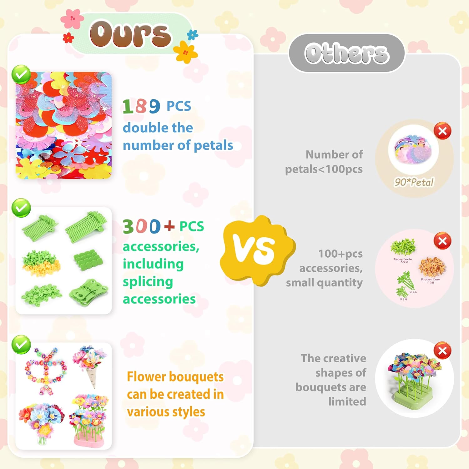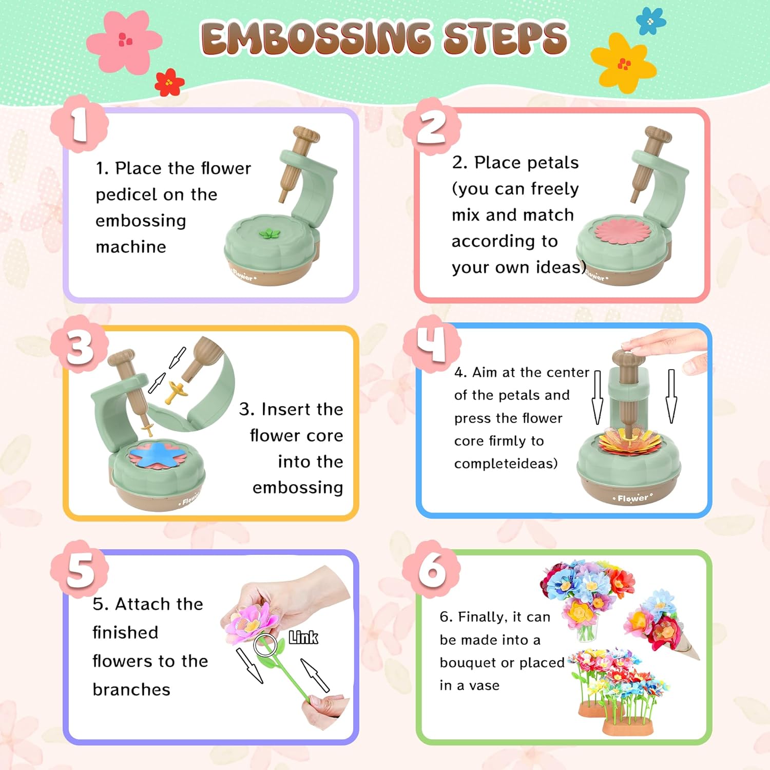 - 🎨【Super Doubled Accessories, Unlimited Creativity】 Say goodbye to monotony! Our DIY bouquet kit is equipped with 300+ pieces of exquisite accessories, which is more than twice the average model! There are embossing machines, petals, leaves, flower stems, etc., and all accessories can be reused, environmentally friendly and durable. Children can freely combine colors and shapes to start their journey of artistic creation