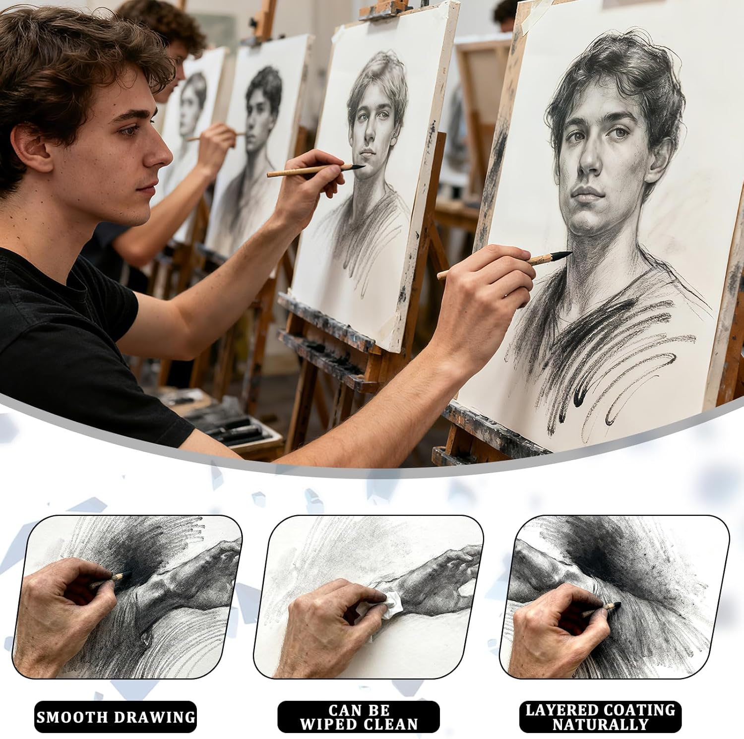 - Versatile Charcoal Powder Art Supplies – Create stunning charcoal art with smooth, rich pigment. Great for beginners & pros—essential for charcoal drawing, portraits, and detailed sketches.