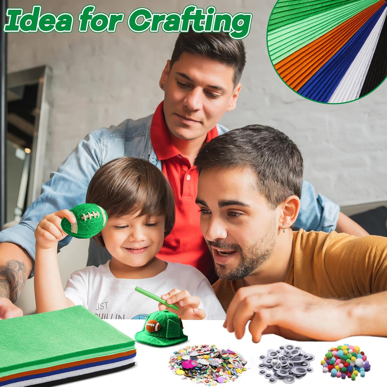 gisgfim 42Pcs Football Felt Fabric Sheets Craft Kit 8 x 12 Inch Green Brown Assorted Colors Thick Felt Pack with Wiggle Google Eyes Pompoms Glitter Patchwork Craft for DIY Sewing Art Project Decor
