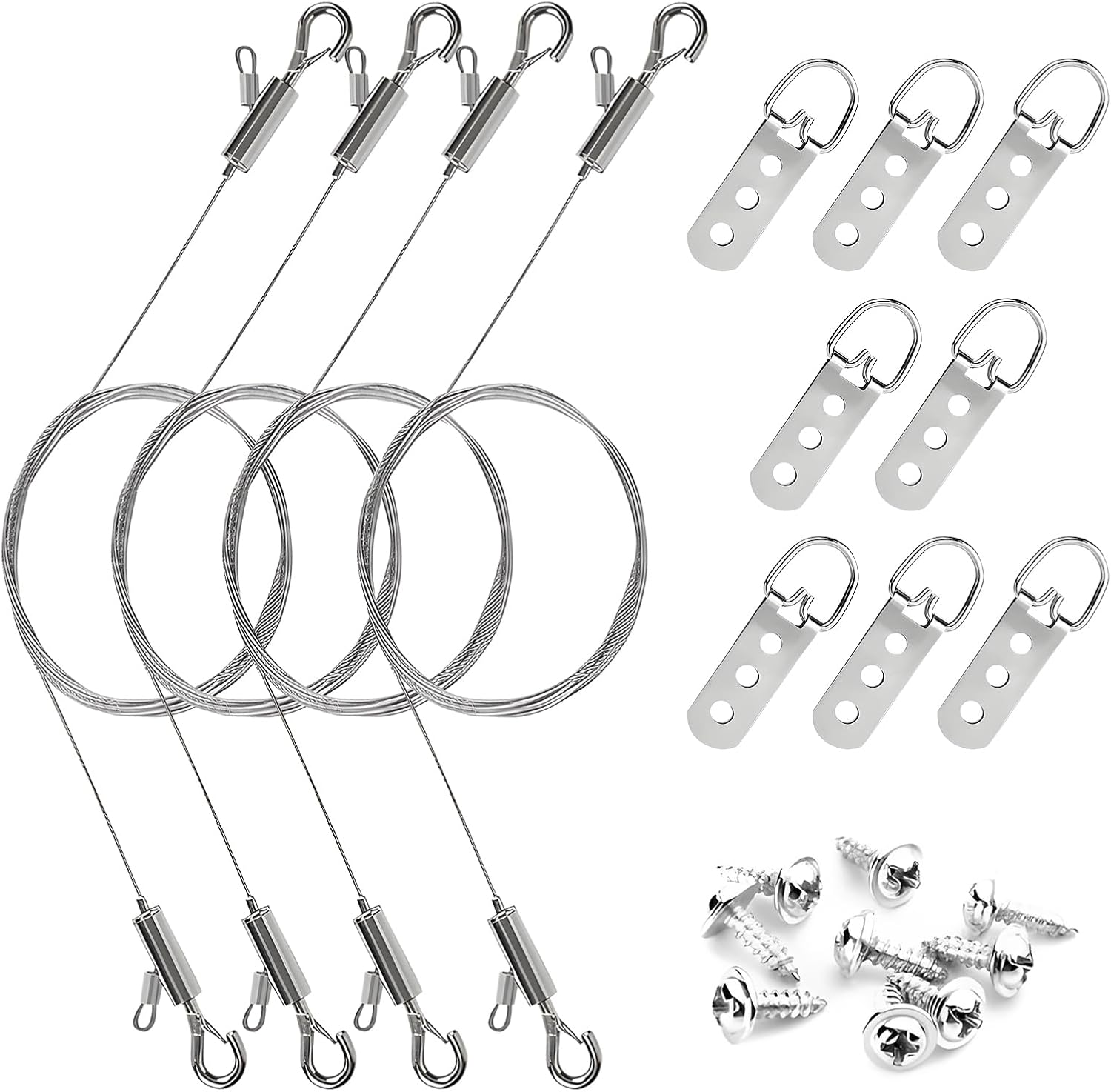 - Complete Picture Hanging Kit: Includes 4 x 6.56ft adjustable picture wires with small clips and aluminum sleeves, 8 x 3-hole D Rings, and 24 screws for D Rings. Conveniently stored in a durable plastic case for easy organization and use
