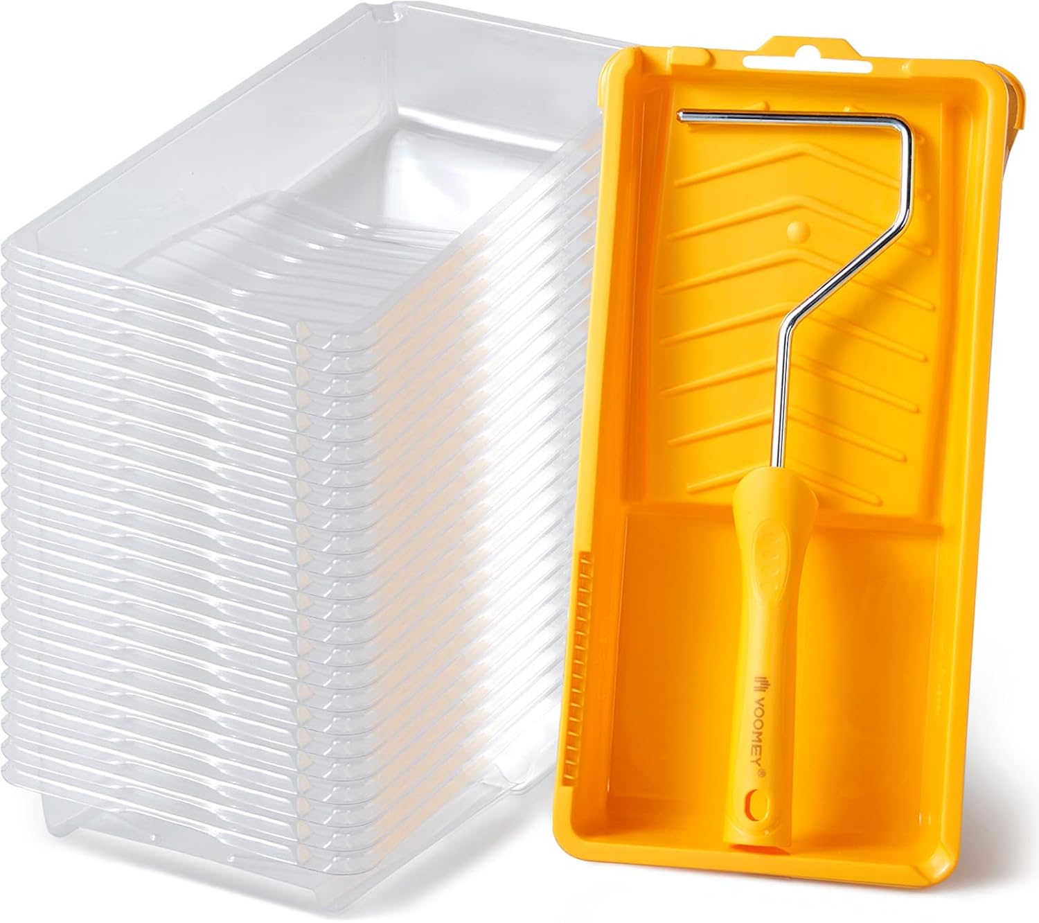 Voomey 4 Inch Paint Roller Tray - 24 Pack Plastic Liners & 1x Roller Frame, 4" Paint Tray Set, for Home Decor, Walls and Furniture Painting