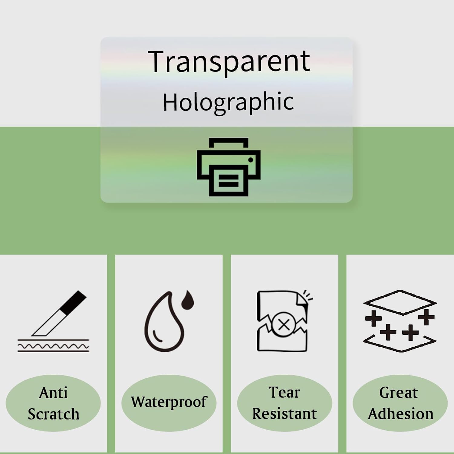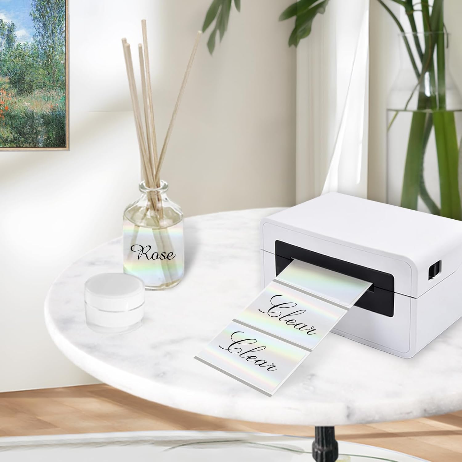 3x2 Inch Transparent Holographic Thermal Labels Stickers, Clear Self-Adhesive Direct Thermal Labels, Perforation Line Design& Waterproof- 200 Sheets