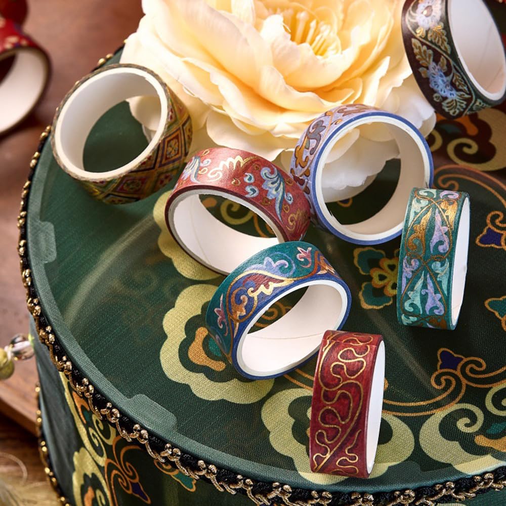 - Chinoiserie Patterns Design: With 10 different gold foil rolls with floral and geometric patterns. These washi tape will add charm to your art crafts.
