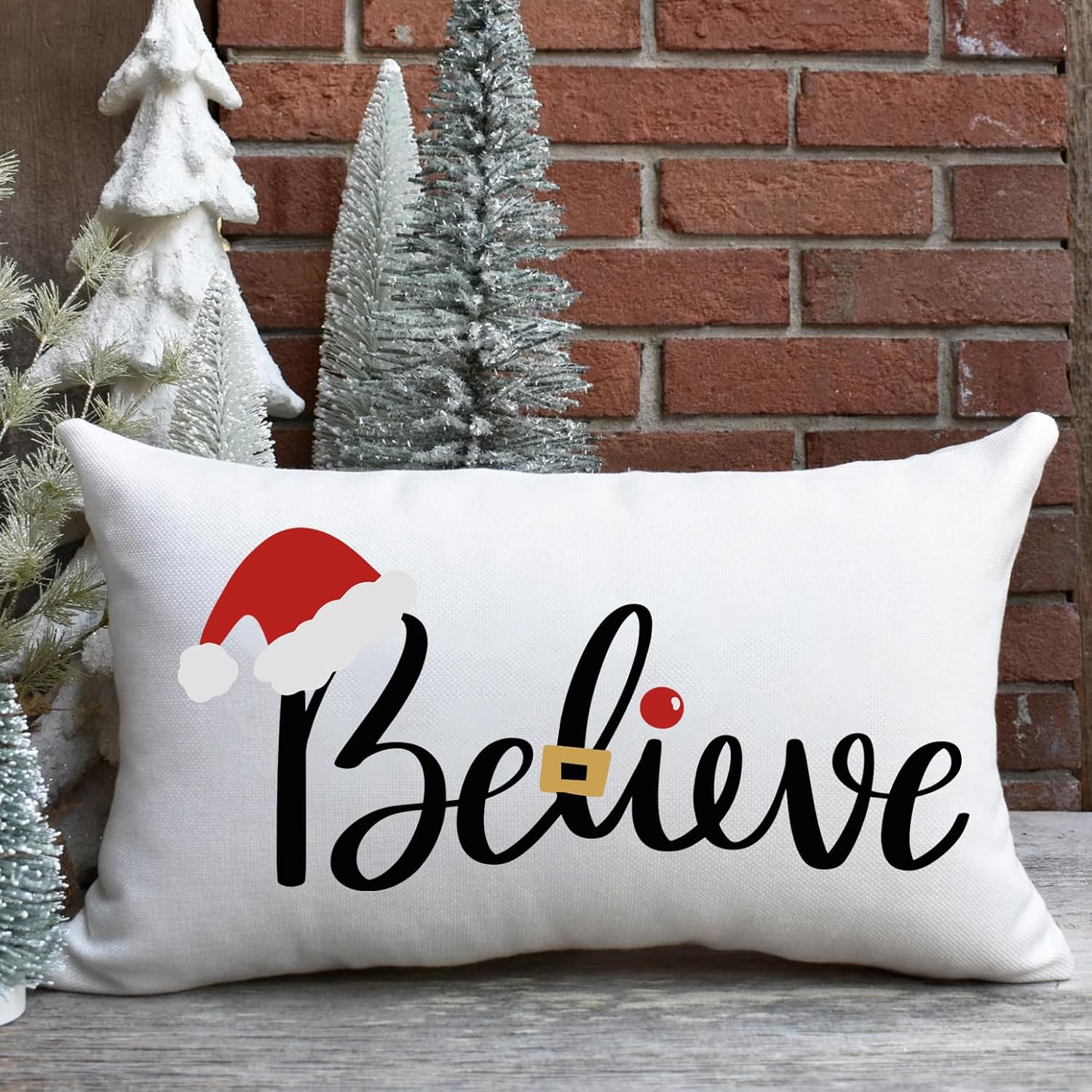 Merry Christmas Stencils for Crafts Reusable Christmas Stencils for Door Mats Believe Holiday Stencil for Painting on Wood Fabrics Porch Hanger Decor