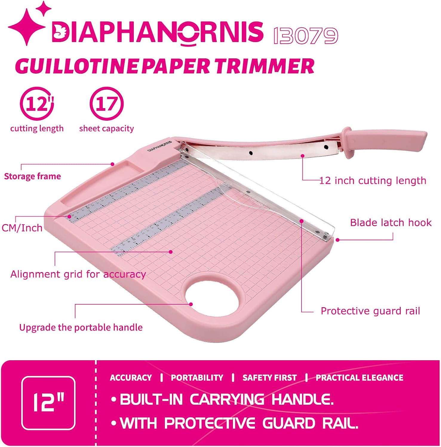 - Upgrade Paper Trimmer: Designed with a safety guard, Panel portable handheld mobile design, this professional paper cutter/trimmer can cut 12 sheets at a time safely for multiple purposes of use; a paperclip storage convenient for quick and disposal or paperclip, binder clips, and small accessories storage