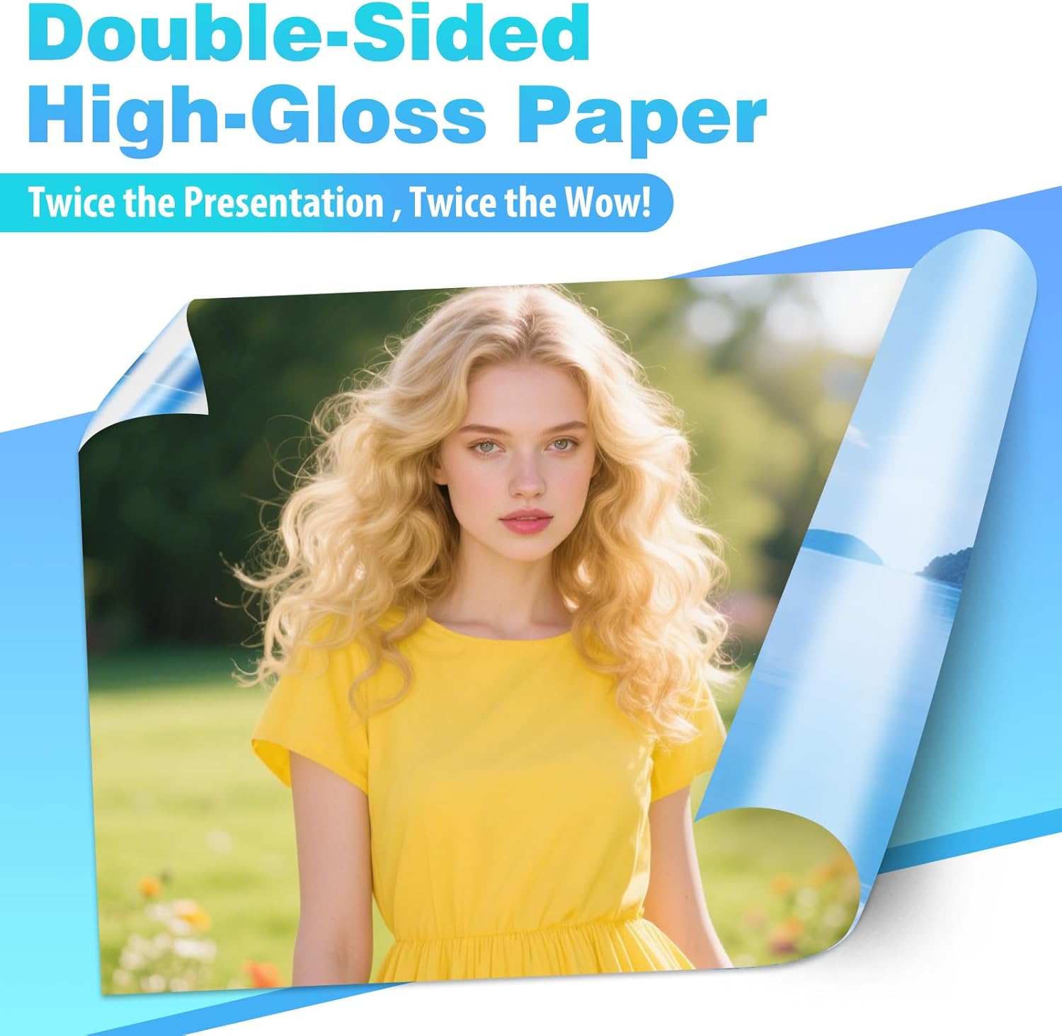 - Inkjet Printers Only: Double Sided Glossy, Thin, Both sides printable, Thickness and Size: Lightweight, 37lb, 140gsm, 6.5Mil, 8.5x11 inches.