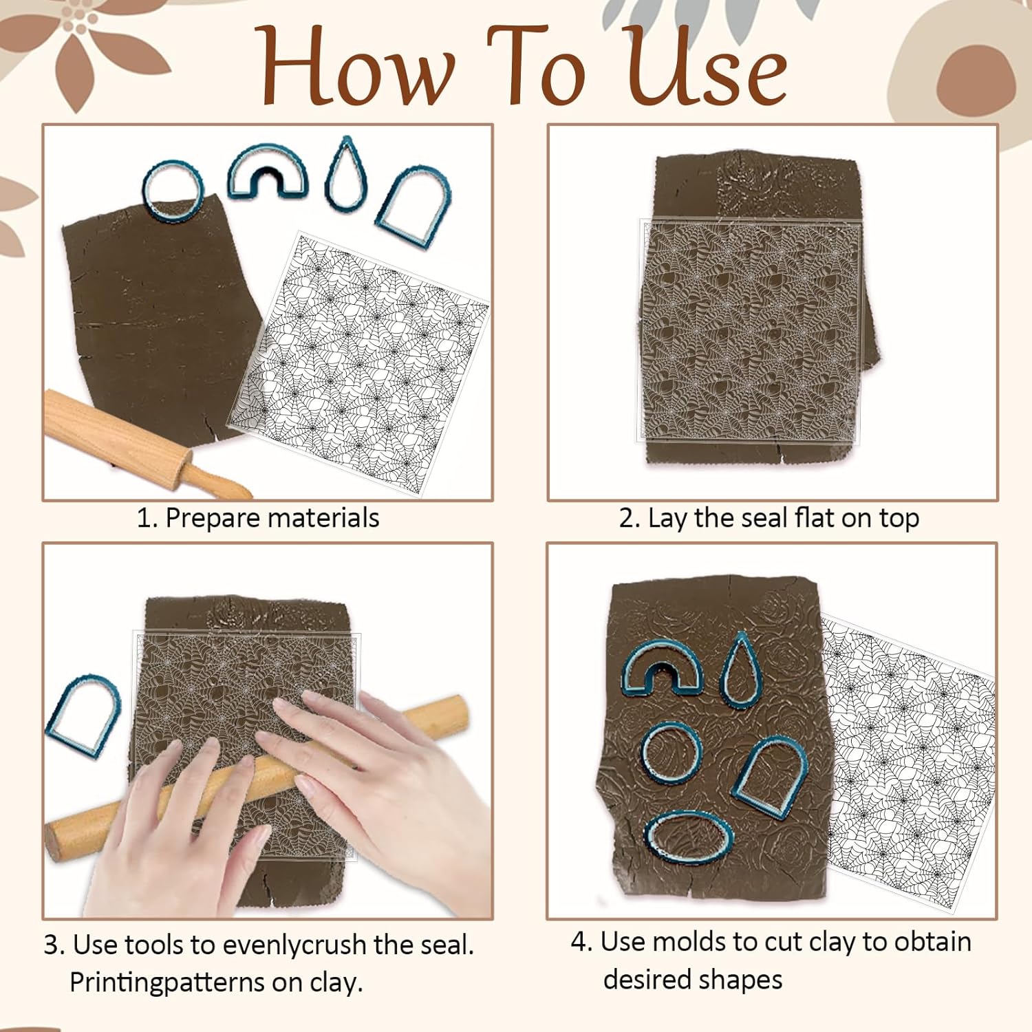 - How to Use: Roll the prepared polymer clay into flakes and place it on the clay texture mat and roll it on top to get a clear solid texture, and then colour it with a variety of colours. This clay texture stamp is beautifully detailed and is the perfect finishing touch to a clay plate