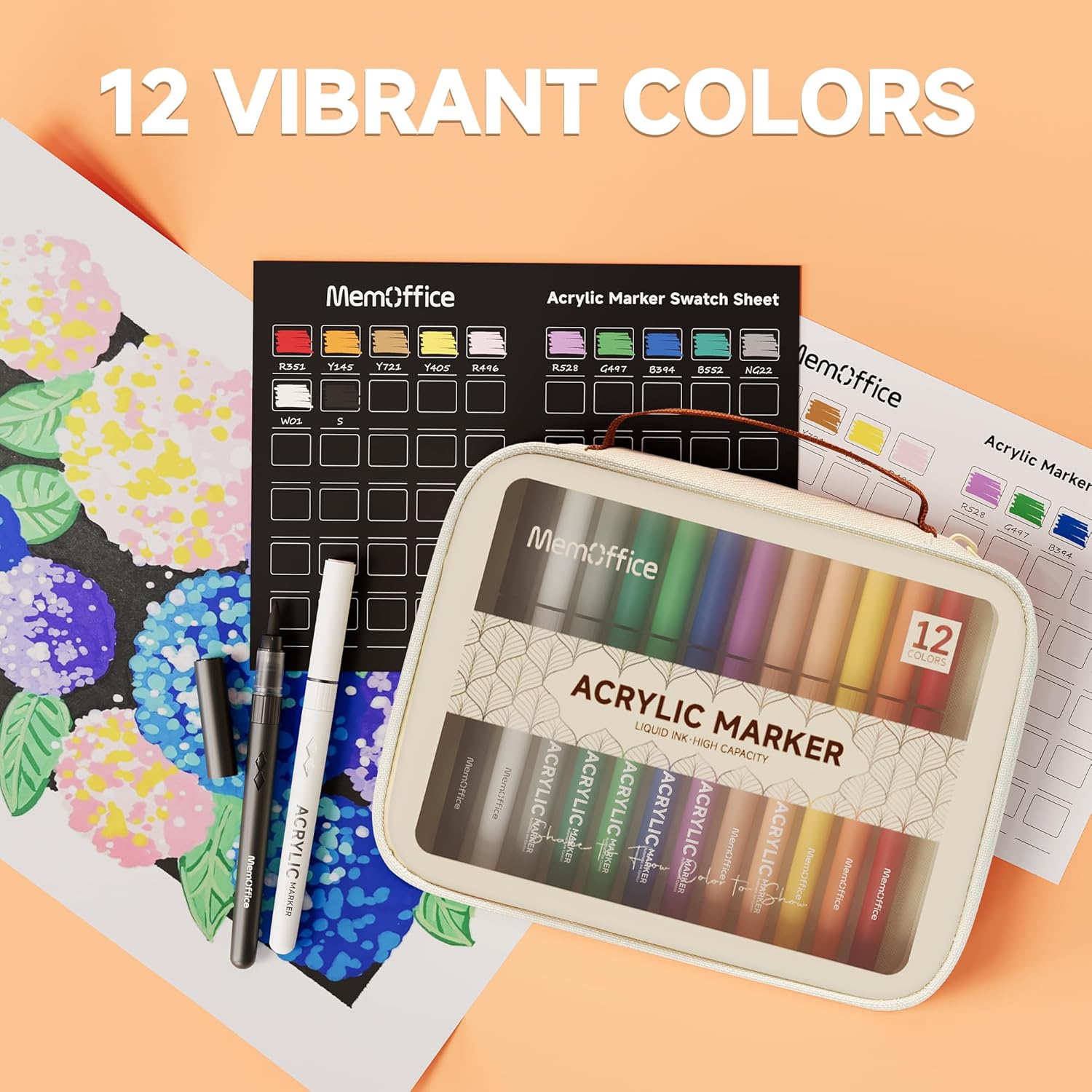 - LARGE CAPACITY & SMOOTH FLOW: The MemOffice acrylic paint markers feature a direct liquid system with a larger ink reservoir than traditional acrylic markers, delivering smooth, consistent ink without pressing. The generous ink supply ensures long-lasting writing and uninterrupted creativity