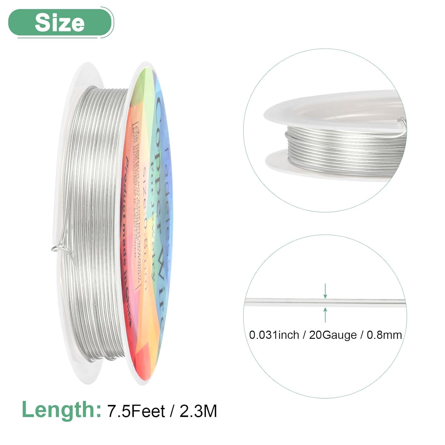 - [Size & Package] - Wire Diameter: 0.8 mm/ 20 Gauge/ 0.031 inch; Each Roll Length: 2.3 M/ 7.5 Feet; Package Includes: 1 Roll x Craft Copper Wire