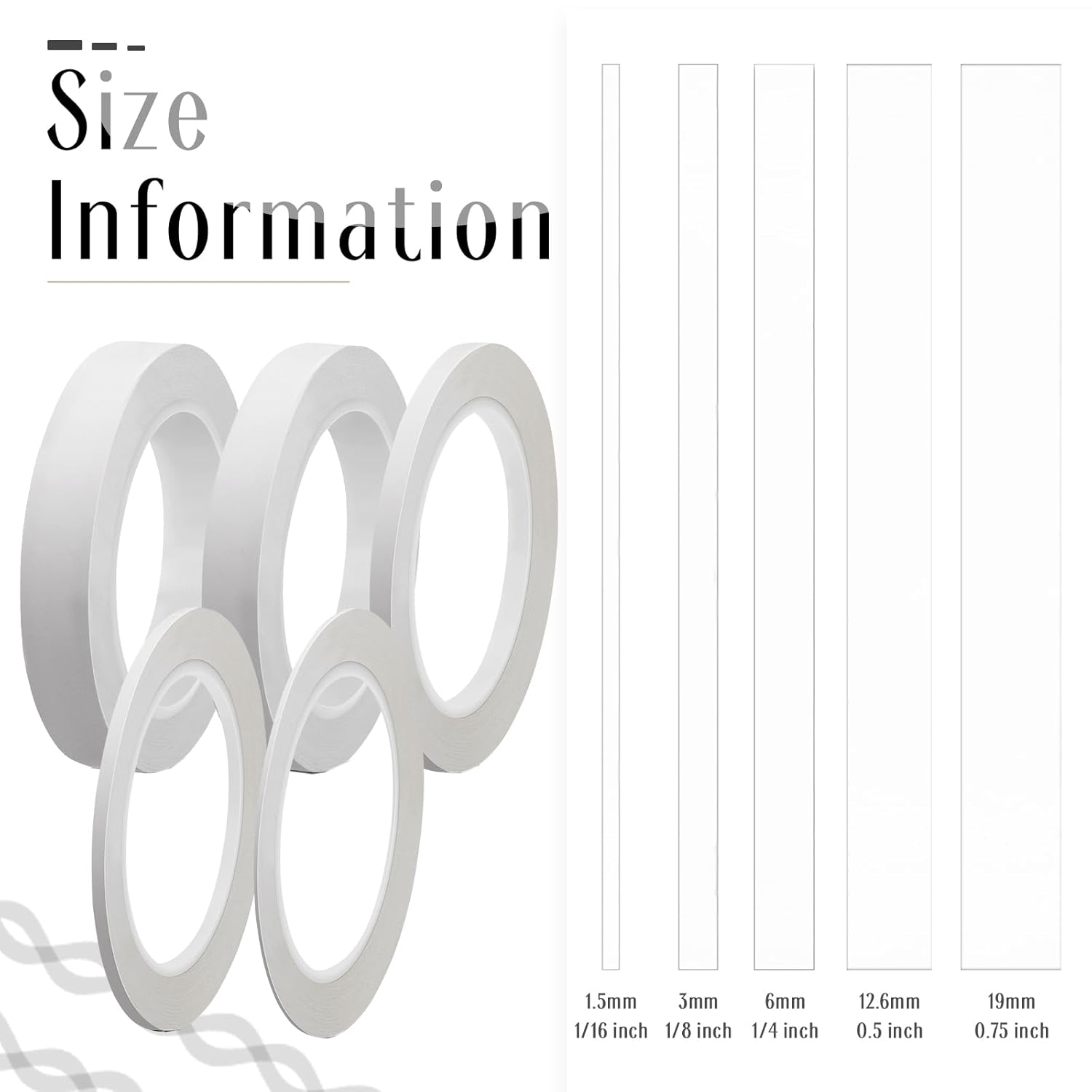 Xuniea 5 Rolls of Vinyl Tape Masking Tape Automotive Car Auto Paint for Curves, High Temperature Vinyl Low Tack(White,1/16, 1/8,1/4, 1/2, 3/4 Inch)
