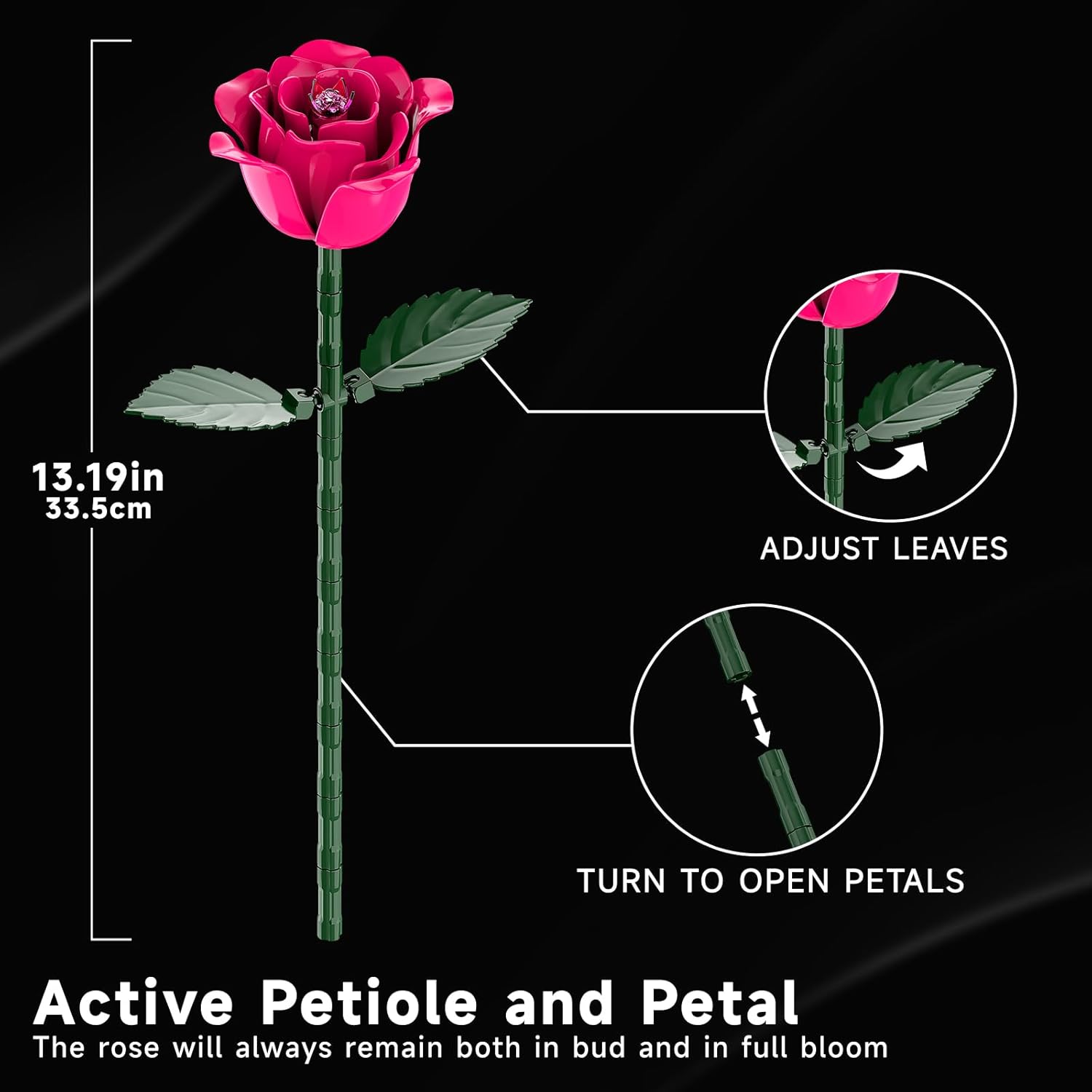 - Fun Linkage: three different sizes of petals combine to form a beautiful rose, bloom flowers counterclockwise and gather flowers clockwise by twisting the bottom of the linkage. adjustable 360Β° ball-jointed leaf stem structure can be easily bent and held at any angle, facilitating unlimited creative arrangements and high-freedom display possibilities