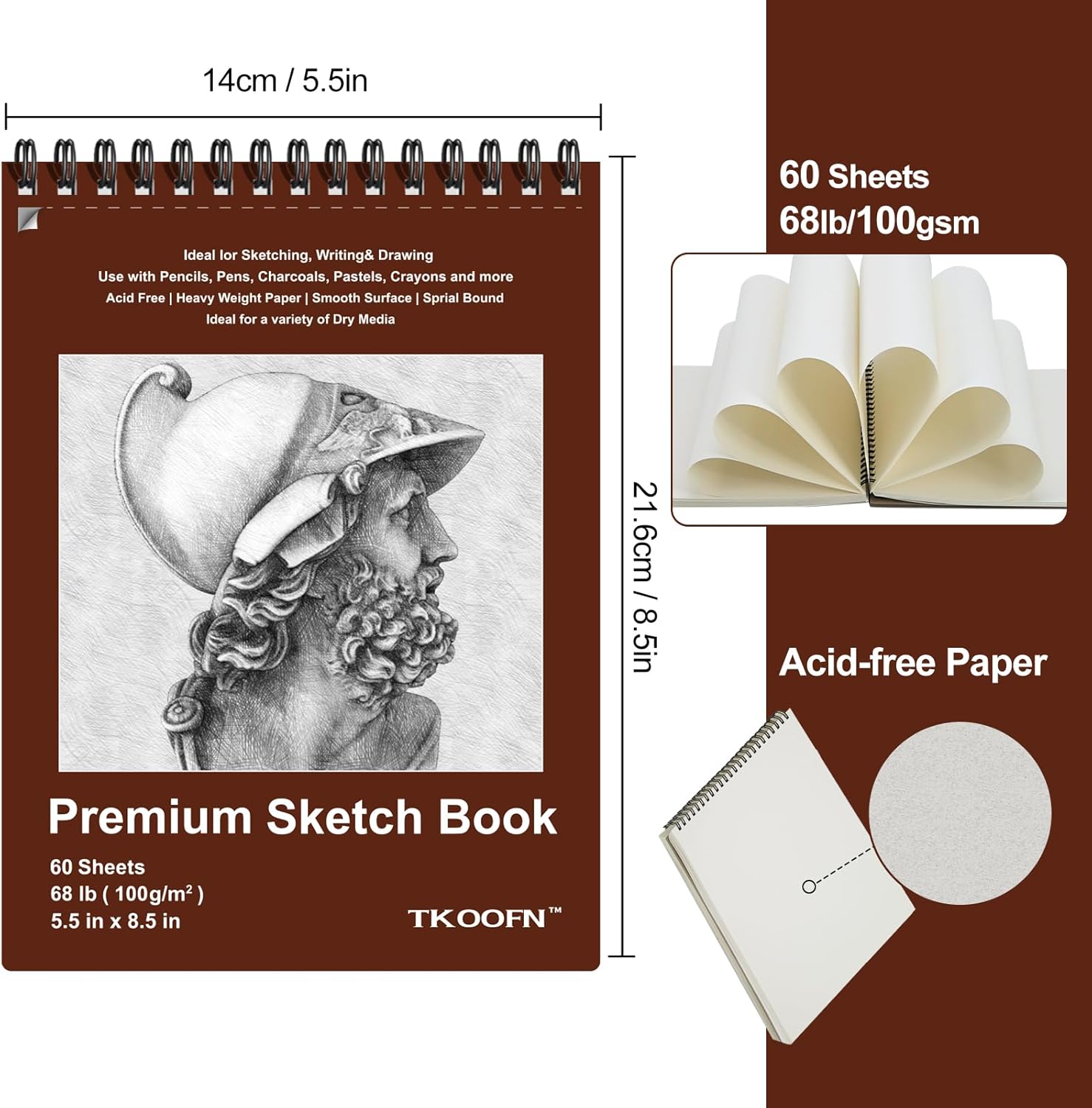 - 【5.5" x 8.5" Professional Sketch Book Pads】 Double side 60 sheets in each pad. Widen your possibilities with the large 5.5 x8.5 inch drawing pages. Both beginners and seasoned art pros will relish in the freedom granted by this plus sized paper! A sketching pad can be tucked into a bag or backpack, perfect for branding your imagination and documenting your ideas anytime, anywhere.