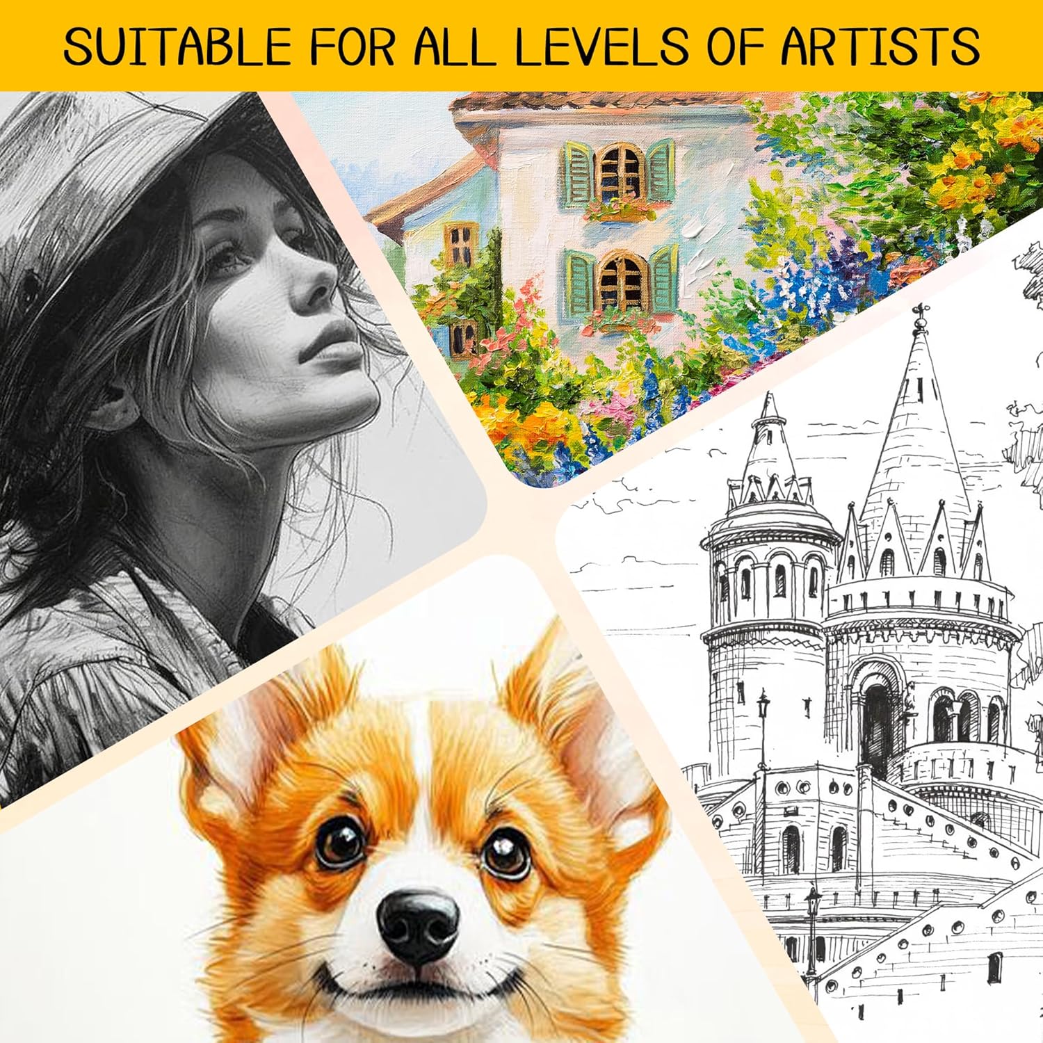 - Suitable for all artists: Whether you’re a child discovering art for the first time, a student honing your skills, or a professional artist creating portfolio pieces, this sketchbook can adapt to your needs. Its sturdy hardcover and portable size make it ideal for practice, classes or capturing inspiration on the go. Ideal for capturing inspiration wherever it strikes, during commutes, outdoor excursions, or studio sessions, a versatile companion for creators at every skill level.