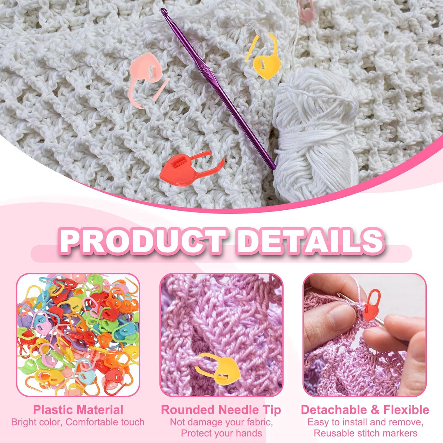 - Durable Material: The stitch markers are made of plastic, which can be hooked into knitting or crochet stitches to prevent slipping, with smooth surface, lightweight and durable. They will not tear or damage fabric during use, and are reliable marking tools for crochet and knitting accessories.
