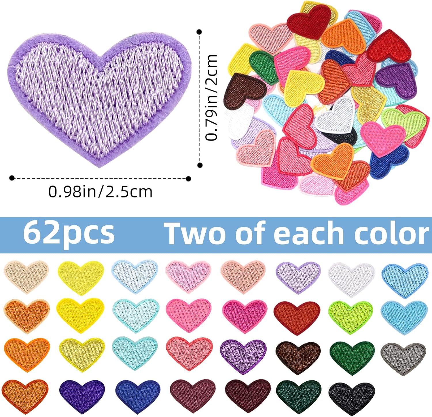 - 【Super Value Packaging】Each set includes 62 exquisite colorful embroidered iron on heart patches,covering 31 different colors with 2 pieces of each color,ensuring you can always find the perfect color match for any project.Each heart sew on patch measures 0.98 inches in length and 0.79 inches in width,making colorful hearts iron on patches suitable for both small-area decoration and covering minor imperfections on clothing