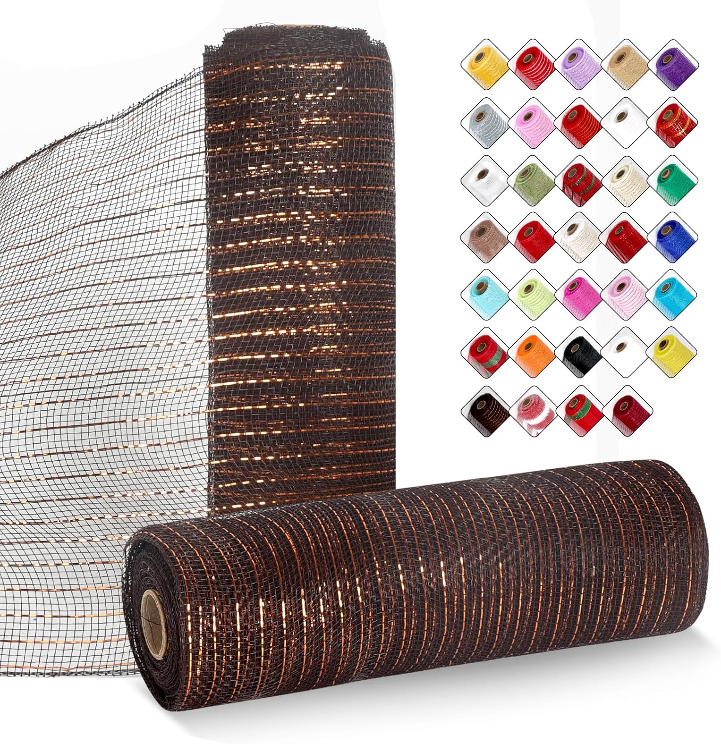 2 Rolls Mesh Ribbon for Wreaths 10 Inch x 30 Foot Wreath Mesh Rolls with Metallic Foil for Easter Christmas Party Wedding Home Decor DIY Craft Projects and Gift Wrapping (Brown)