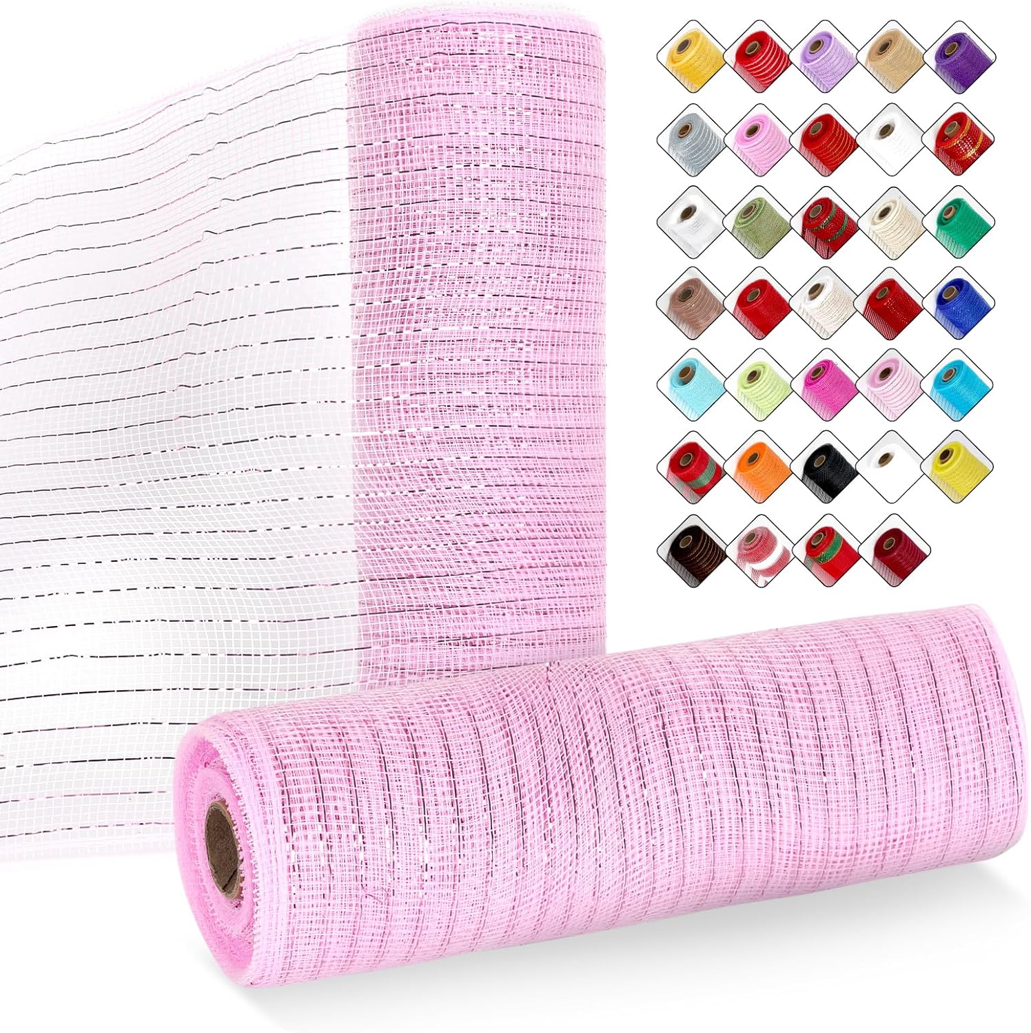 - Rich Colors, Unlimited Creativity! These versatile Wreath Mesh Rolls come in 34 vibrant colors and are accented with elegant gold foil detailing, creating a sophisticated and eye-catching look. Made with professional-grade colorfast technology, they maintain rich, lasting hues that enhance any decorative style. Perfect for holidays and themed events, these ribbons inspire creativity and add a stunning touch to every celebration.