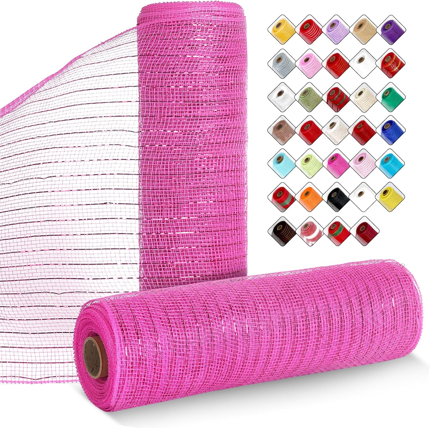 - Rich Colors, Unlimited Creativity! These versatile Wreath Mesh Rolls come in 34 vibrant colors and are accented with elegant gold foil detailing, creating a sophisticated and eye-catching look. Made with professional-grade colorfast technology, they maintain rich, lasting hues that enhance any decorative style. Perfect for holidays and themed events, these ribbons inspire creativity and add a stunning touch to every celebration.
