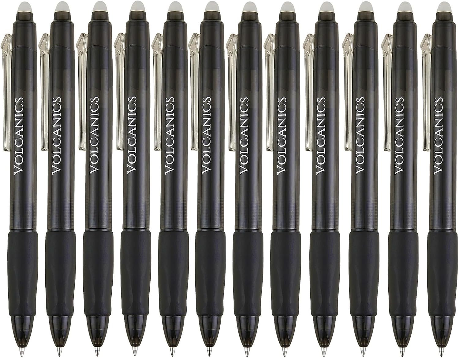 Volcanics Retractable Erasable Gel Pens Black 12 Pack, Click Erasable Gel Ink Pens for Smooth Writing & Easy Erasing, Refillable Erasable Click Pens for School Office Supplies