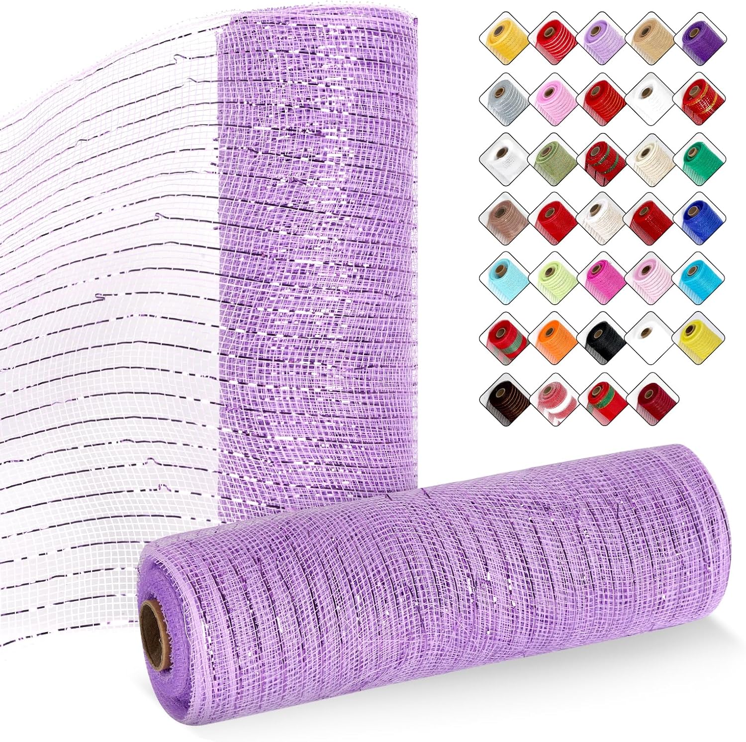 2 Rolls Mesh Ribbon for Wreaths 10 Inch x 30 Foot Wreath Mesh Rolls with Metallic Foil for Easter Christmas Party Wedding Home Decor DIY Craft Projects and Gift Wrapping (Light Purple)