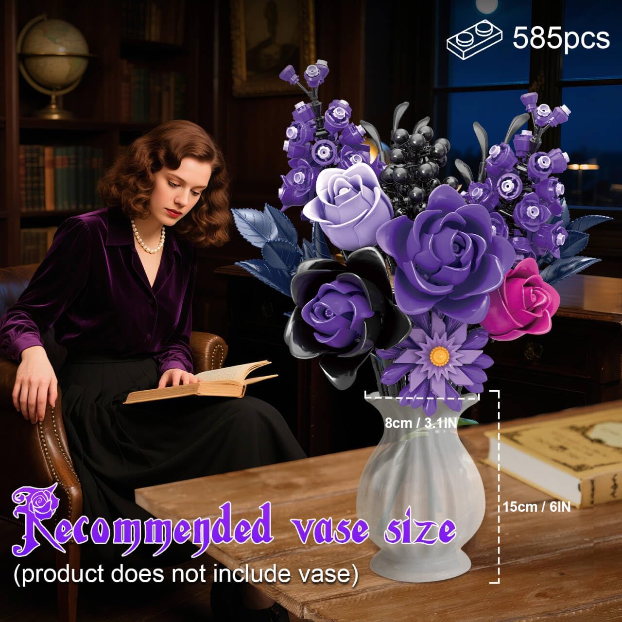 Gohero Purple Roses Building Blocks Set (822PCS) - Lego Compatible Flowers for Adults, Gothic Home Decor, for Women & Teen Girls, Making It an Ideal Gift for Halloween, Valentine's Day.