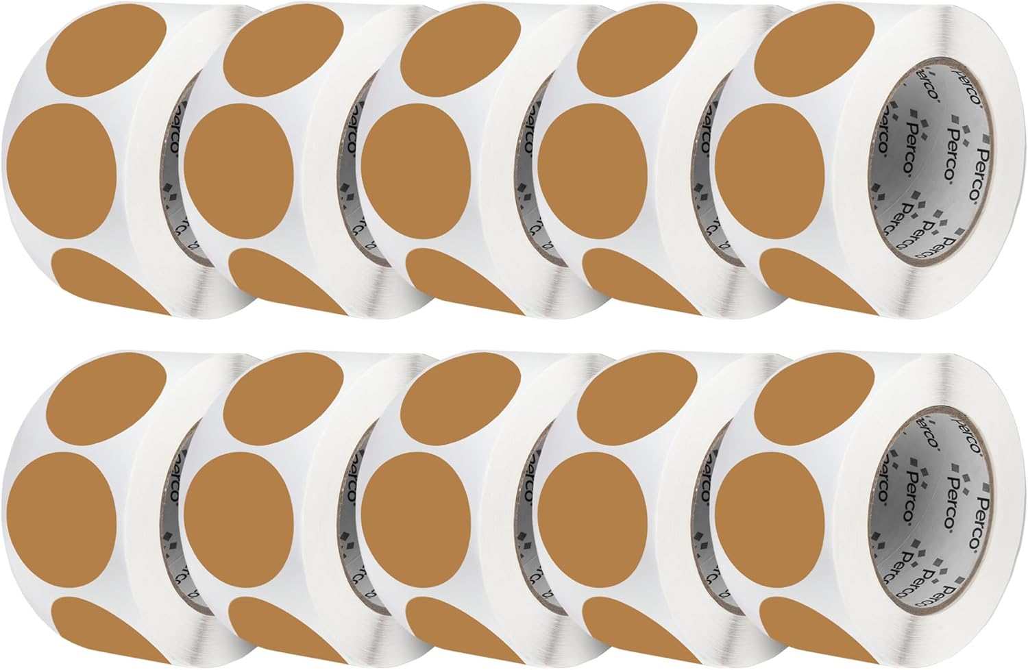 Perco Kraft Brown 3-Inch Perforated Circle Dot Sticker Labels — 10 Rolls, 5,000 Round Stickers — Natural, Cardboard-Like Surface with Permanent Adhesive for Organizing, Crafting & More—Made in USA