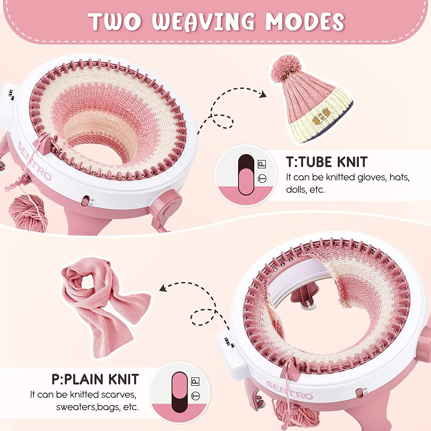 SENTRO 48 Needles Knitting Machine with Row Counter and Plain/Tube Weave Conversion Key, Efficiently DIY Scarf Hat Sock (48 Pink)