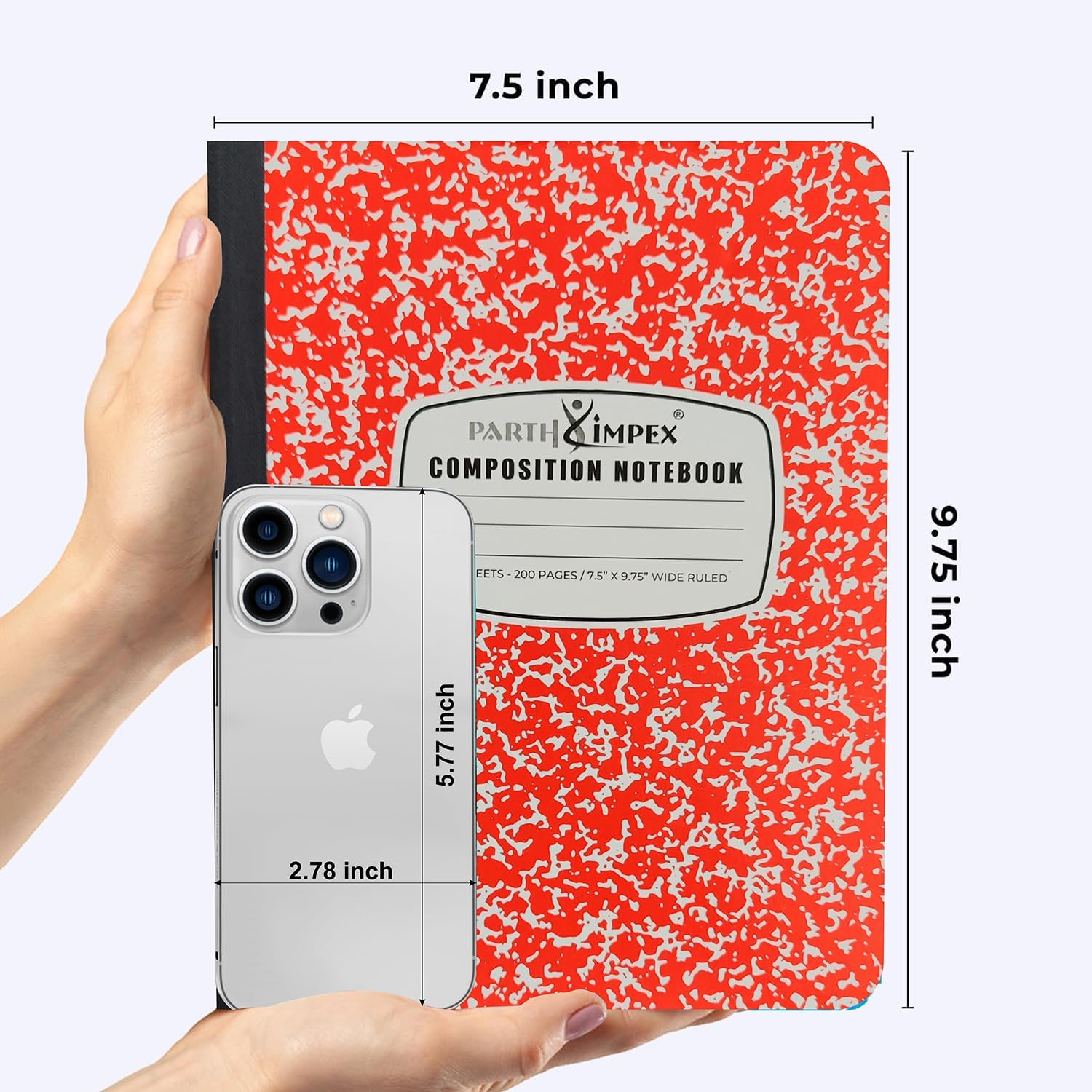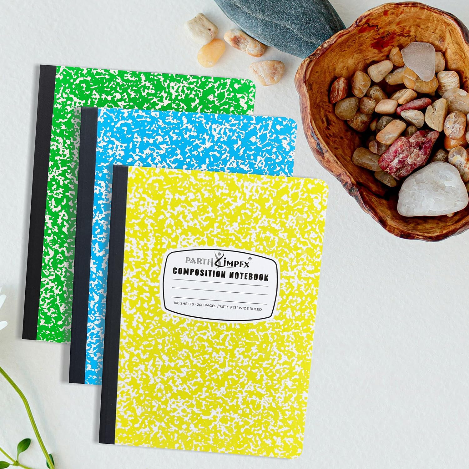 PARTH iMPEX 12 Pack Bulk Composition Notebooks Wide Ruled, 200 Pages (100 Sheets), 9-3/4 x 7-1/2, Hard Cover Wide Ruled Notebooks in 6 Assorted Colors, Composition Notebook For School College Office