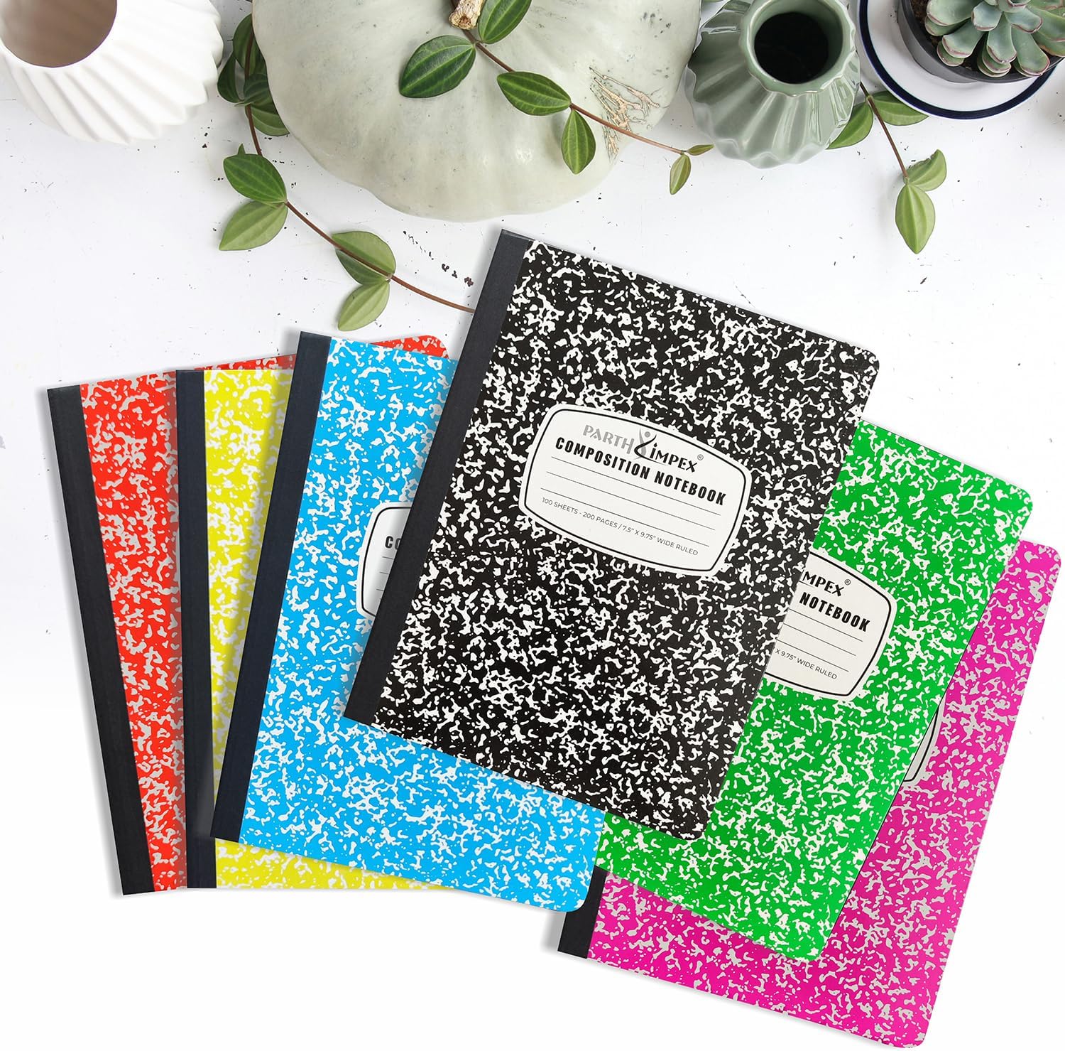 - Pack of 12 Notebooks in 6 Vibrant Colors β Stay organized and color-coded with this value pack of 12 composition notebooks, featuring 6 assorted cover colors (2 of each). Perfect for separating subjects, projects, or departments in school, college, or office settings.