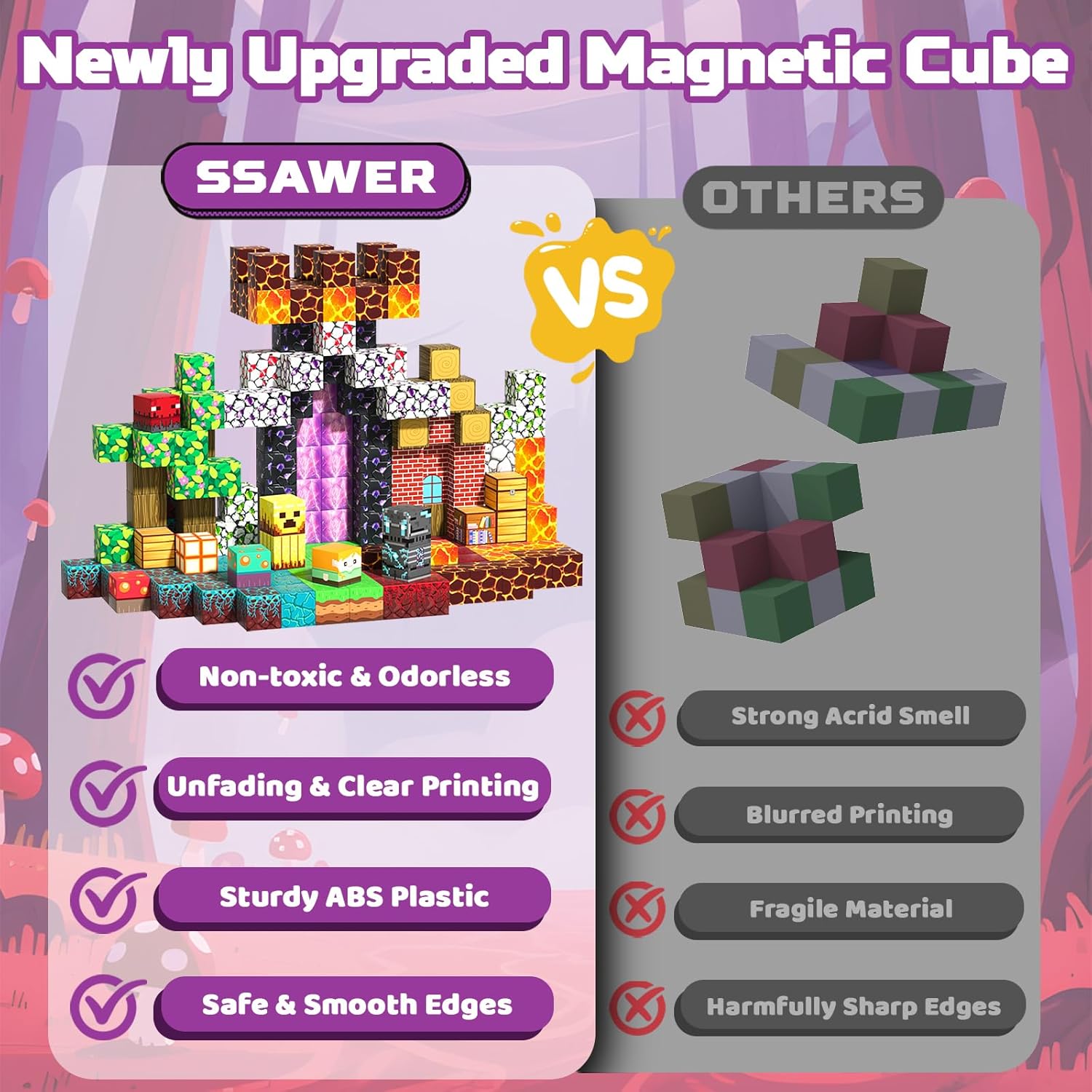 - 【Premium Quality Material】Meet US toy standard and safety test approved. Our magnetic building blocks are made of durable ABS plastic, embedded with 8 magnetic contact points to enhance magnetic force, perfect for kids of ages 3 4 5 6 7 8 -12 to easily stick cubes together and build sturdy structures.