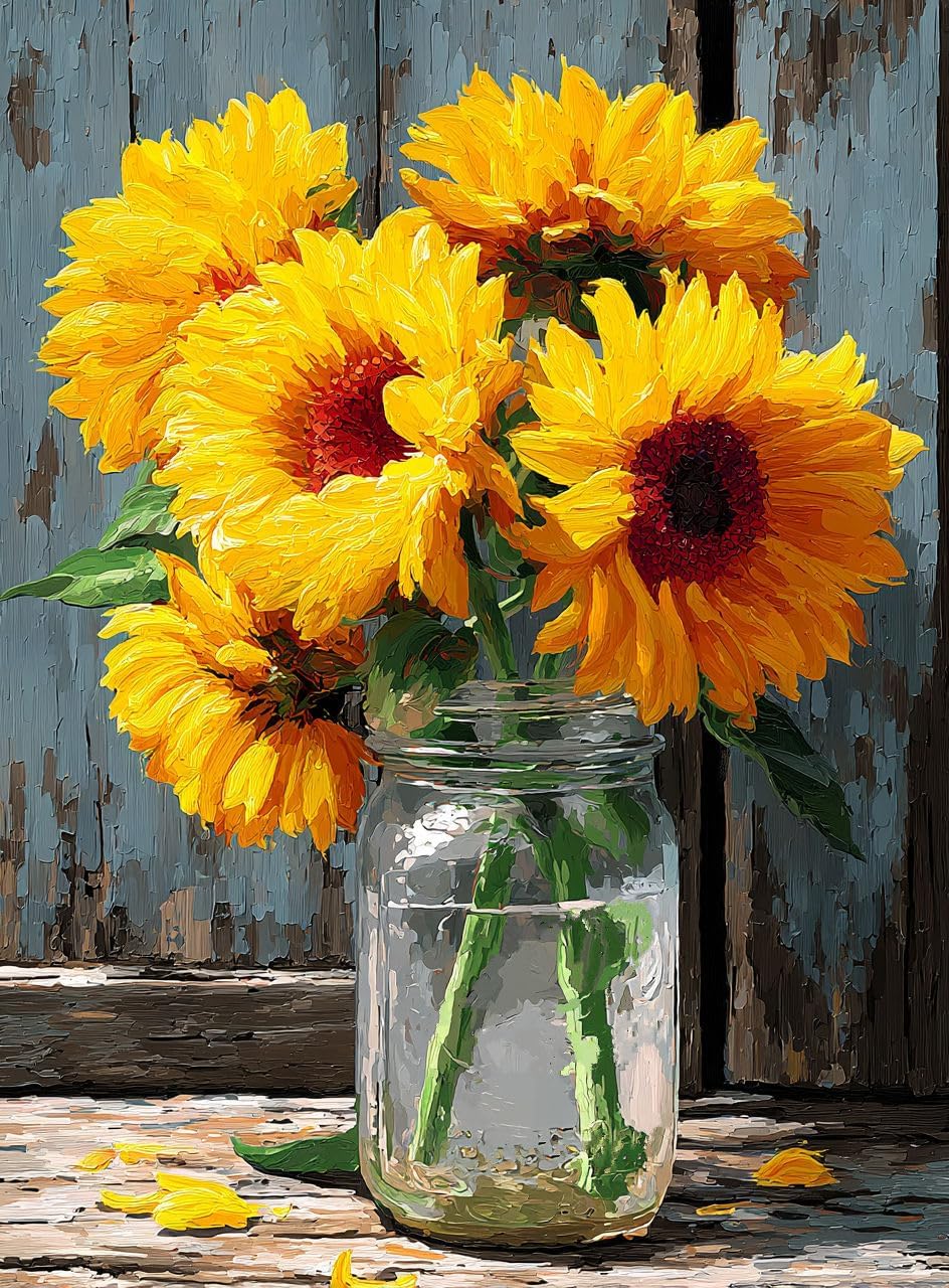 Moohue 14ct Counted Stamped Cross Stitch Kits for Adults Flowers Printed Cross Stitch Patterns Art Crafts Cross Stitch Supplies (Flowers 6)