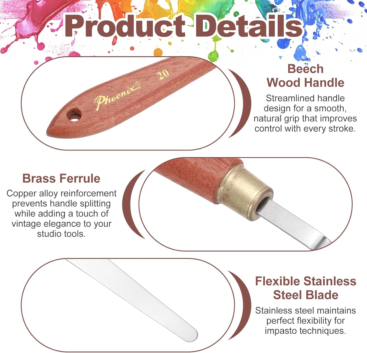 - These versatile painting knives enable techniques like spreading, smoothing, and mixing—perfect for pre-mixing paints or textured effects. Essential for watercolor, oil, canvas, and street art. Painting knives sets suit all artists: professionals, teachers, beginners and enthusiasts seeking precision control.