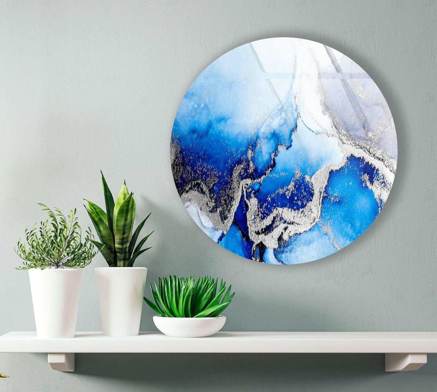 My Photostation.com 27.5''(70cm) Diameter Blue Marble Round with Silver Details Glass Wall Art Tempered Glass Printing Wall Decor Large Wall Art Wall Hangings