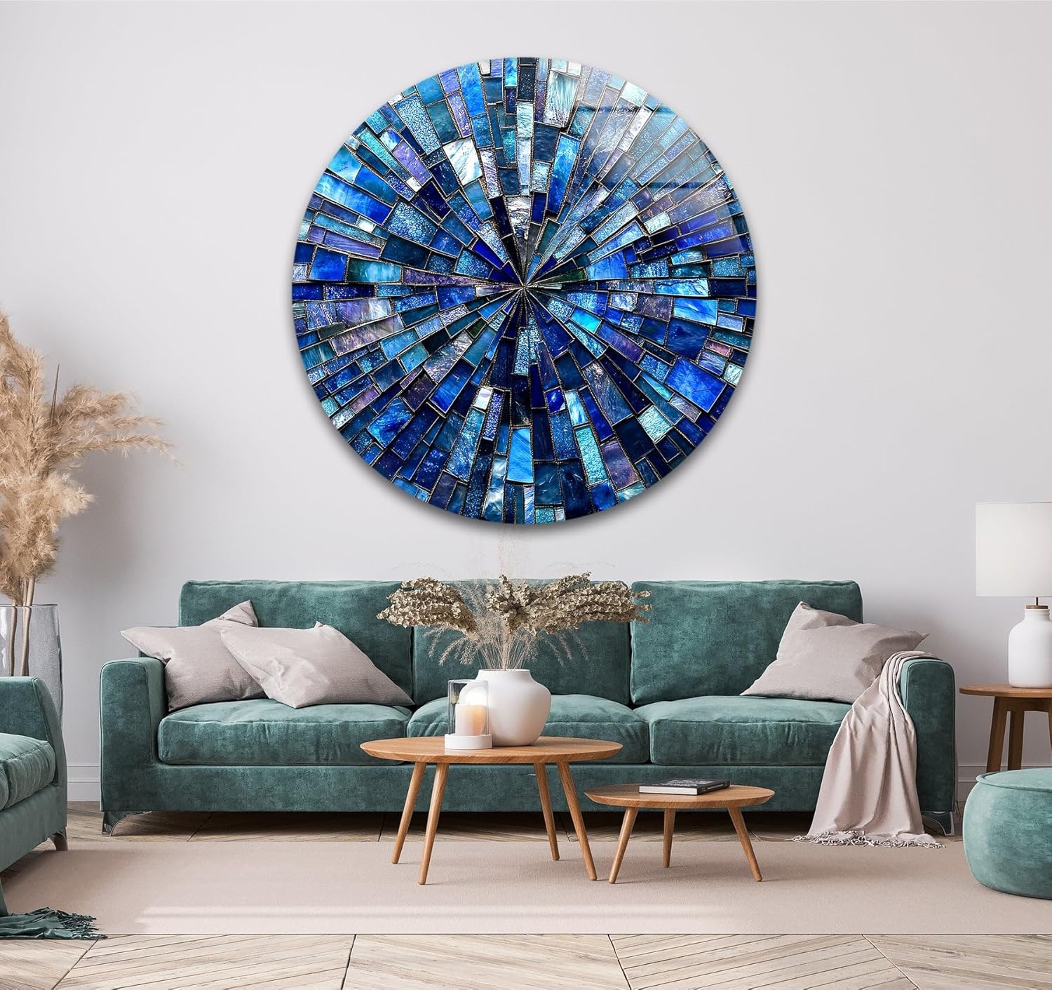 My Photostation.com 39,4''(100cm) Diameter Radiant Mosaic Burst Round Glass Wall Art Tempered Glass Printing Wall Decor Large Wall Art Wall Hangings