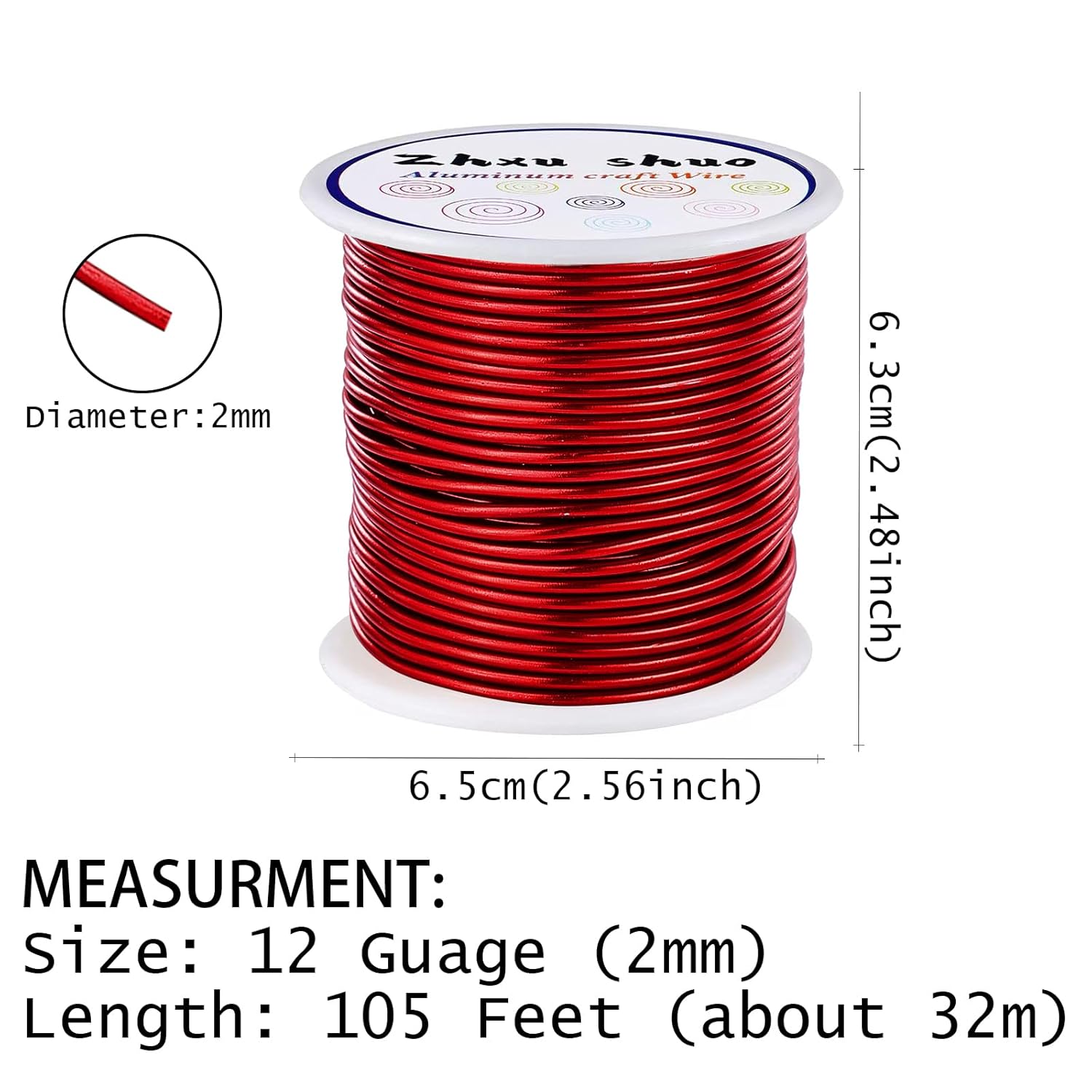 12 Gauge(2mm) Aluminum Wire 35 Yards Anodized Metal Wire for Bonsai Armature Crafting Sculpting Jewelry Craft Making Beading Floral (Red, 12 Gauge)