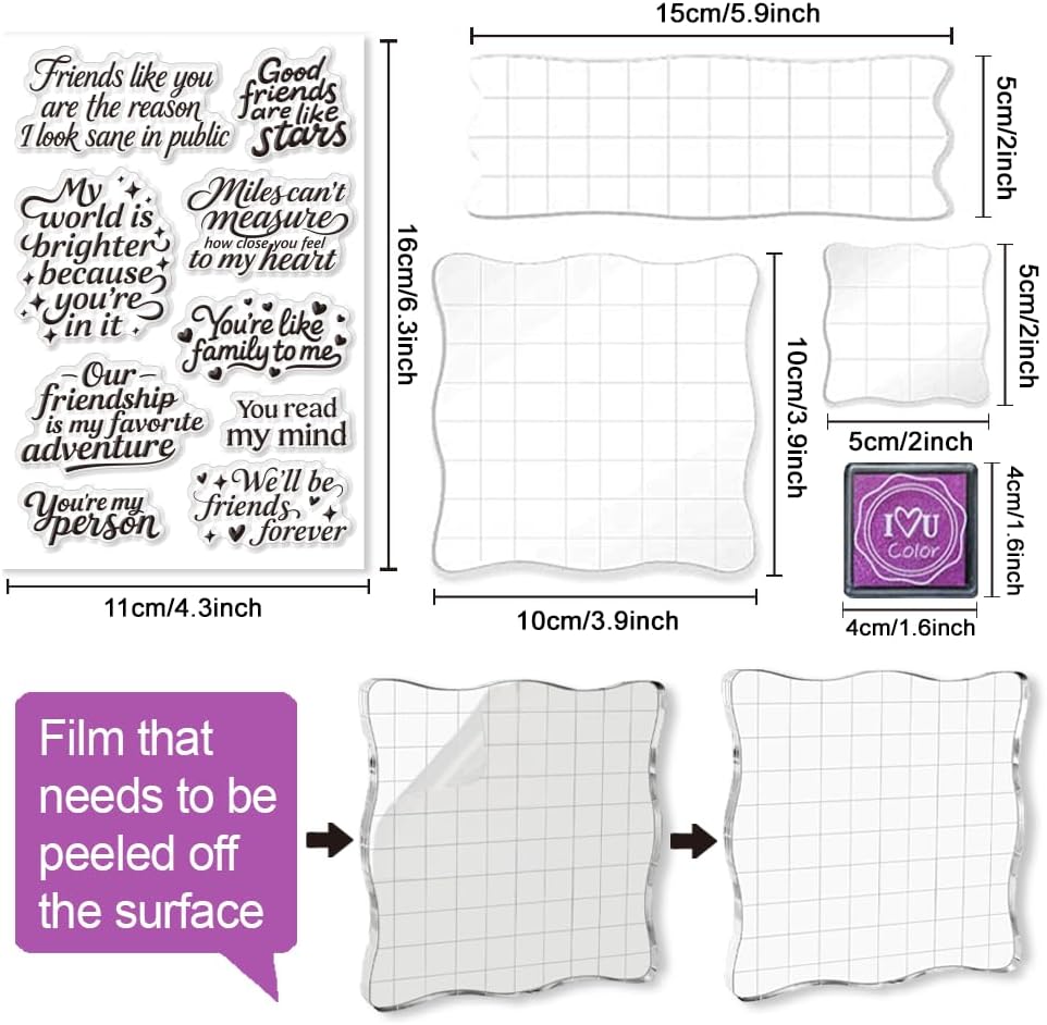 - âăHigh-quality materialsăThese clear stamps for card making are made of silicone material, with delicate details that are resistant to cracking or deformation; the acrylic stamp blocks are printed with prominent grid lines for easy planning and design; the ink pads use vibrant-colored ink, suitable for adults.