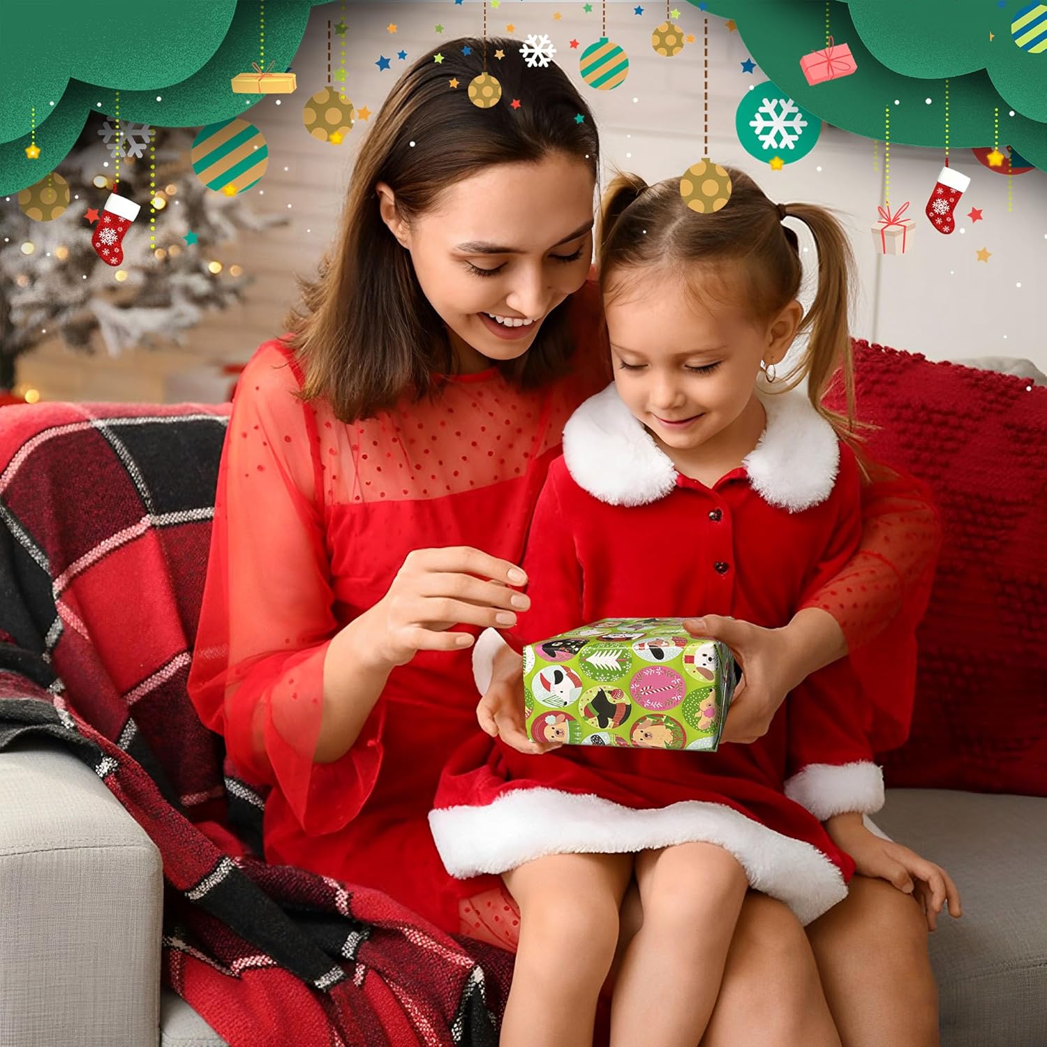 - Seasonal Variety: Featuring 4 unique designs, this wrapping paper collection includes Gingerbread Man and Candy Cane, Santa Claus carrying gifts, Christmas tree/bell and Reindeers, Various dog badge designs, giving your gifts a stylish holiday touch.