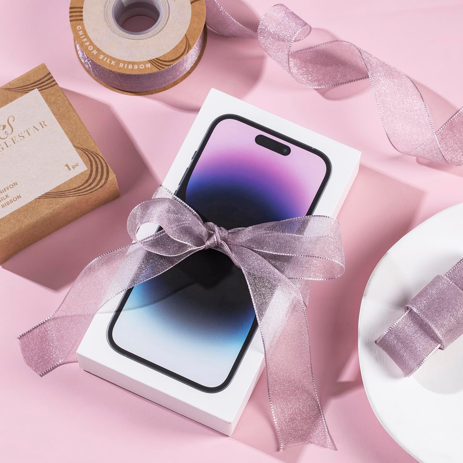 1 Inch Wide Sheer Chiffon Ribbon - Pearl Silk Woven Ribbon Suitable for Gift Wrapping, Wedding Decor, Home Decor, Girl Hair Accessories Handmade DIY (25 Yards/roll) (Purple)