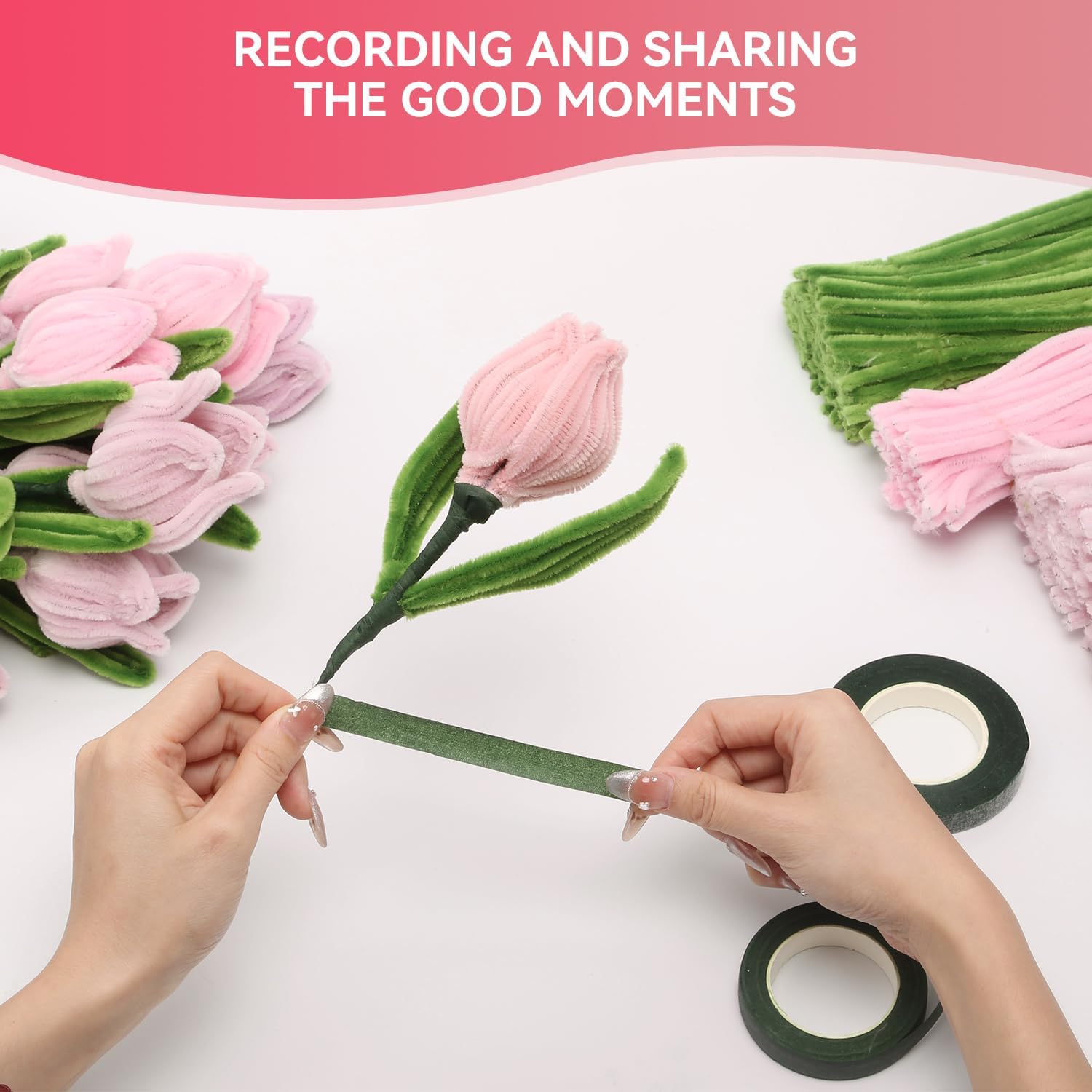 - 💐【All-in-One DIY Flower Kit – Perfect for All Ages】 This DIY bouquet kit includes everything needed to create stunning faux flowers: 400 pink chenille stems, 30 green floral wires, 2 rolls of floral tape, a satin ribbon, and 150 realistic flower stamens. Ideal for kids, teens, or adults looking for a fun and screen-free creative activity.