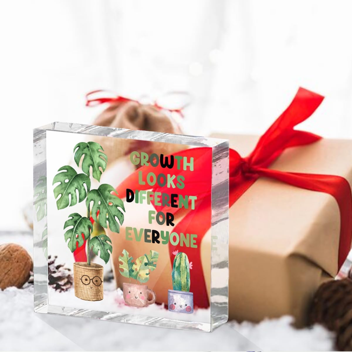 Inspirational Quote Desk Decor Acrylic Sign 4X4 Inch, Watercolor Greenery Positive Affirmation Decorative Signs for Shelf Tabletop Cubicle Room Office, Greenery Gifts for Women Friends