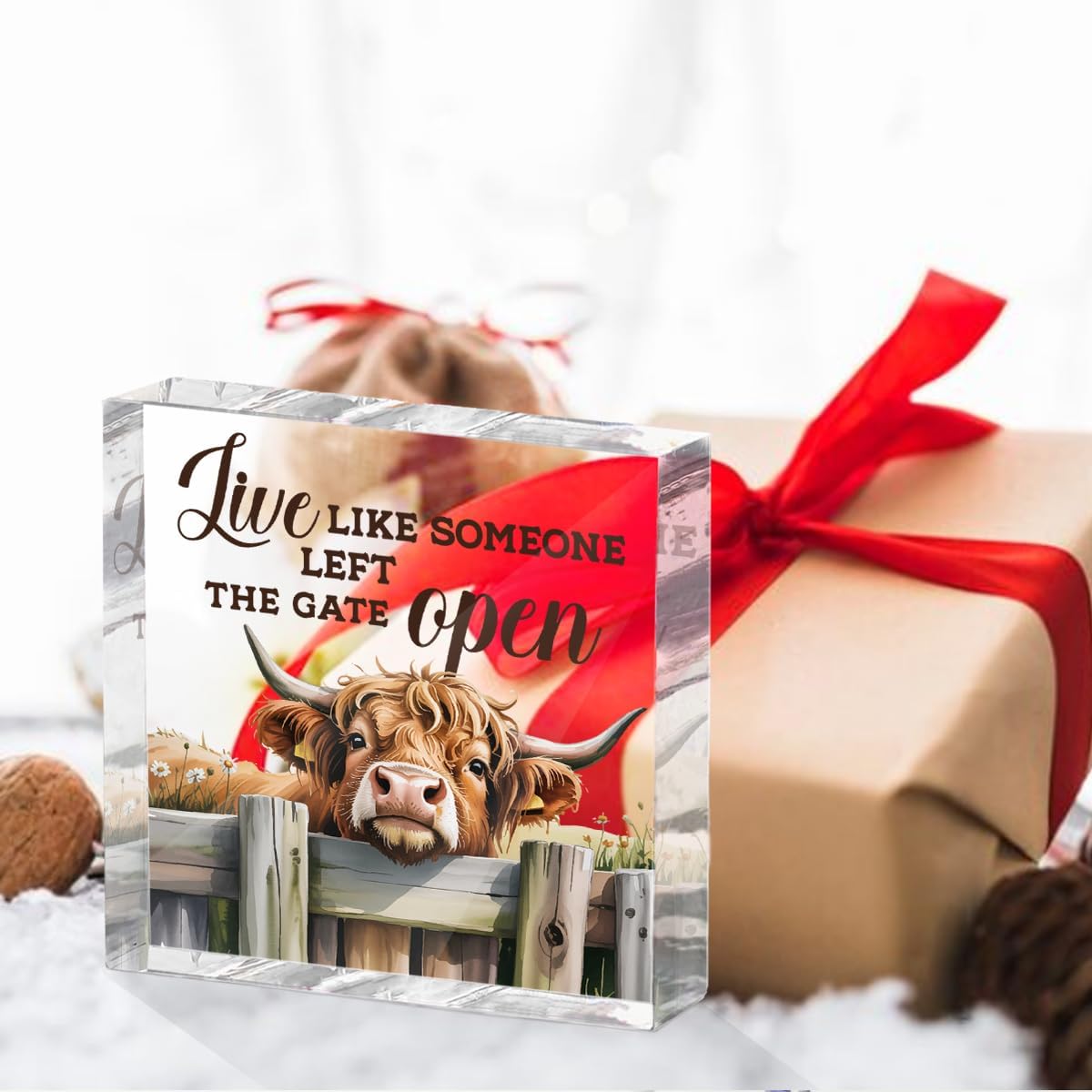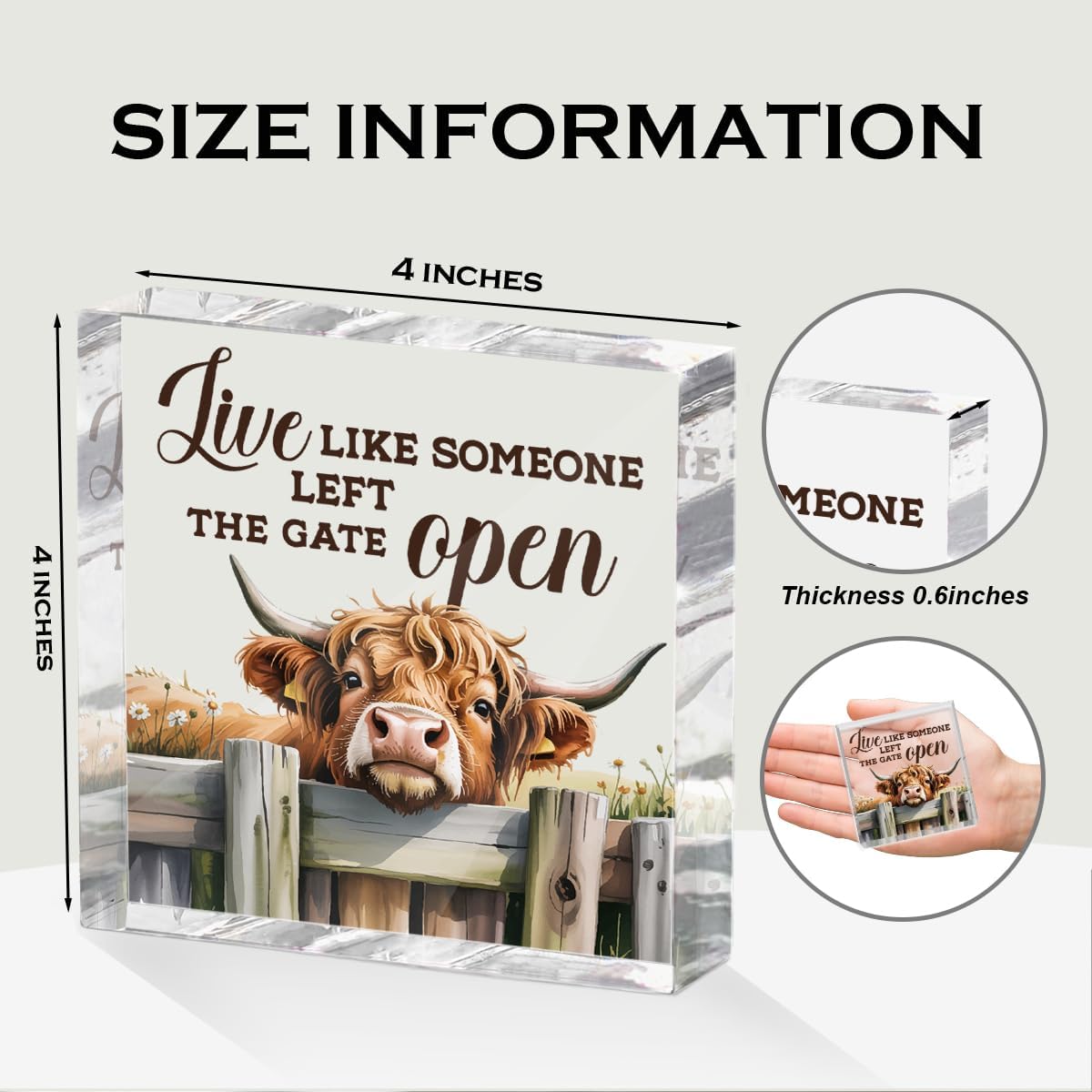 Cute Cow Decorative Signs, Rustic Western Animal Office Desk Decor Acrylic Sign 4x4 Inch, Desk Accessories Signs for Bathroom Cubicle Farmhouse Kitchen, Cow Gifts for Women Friend