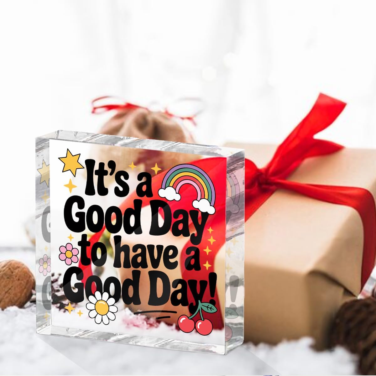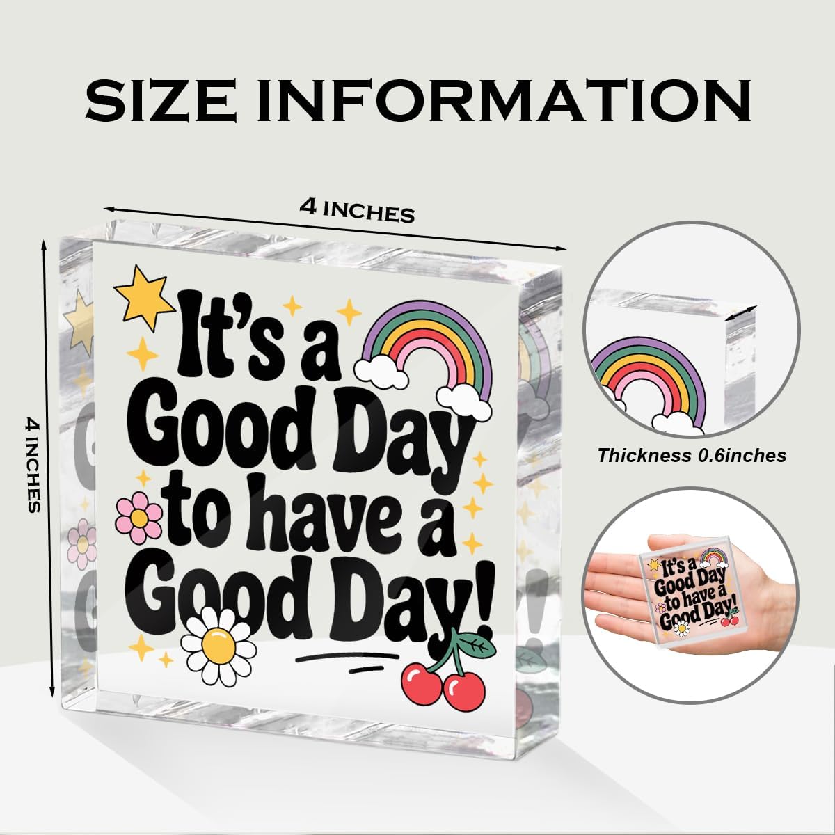 Positive Desk Decor Acrylic Sign 4X4 Inch, Rainbow Cherry Flower Desk Decorative Signs for Shelf Tabletop Cubicle Room Office, Inspirational Gifts for Women Men Friends, Have a Good Day