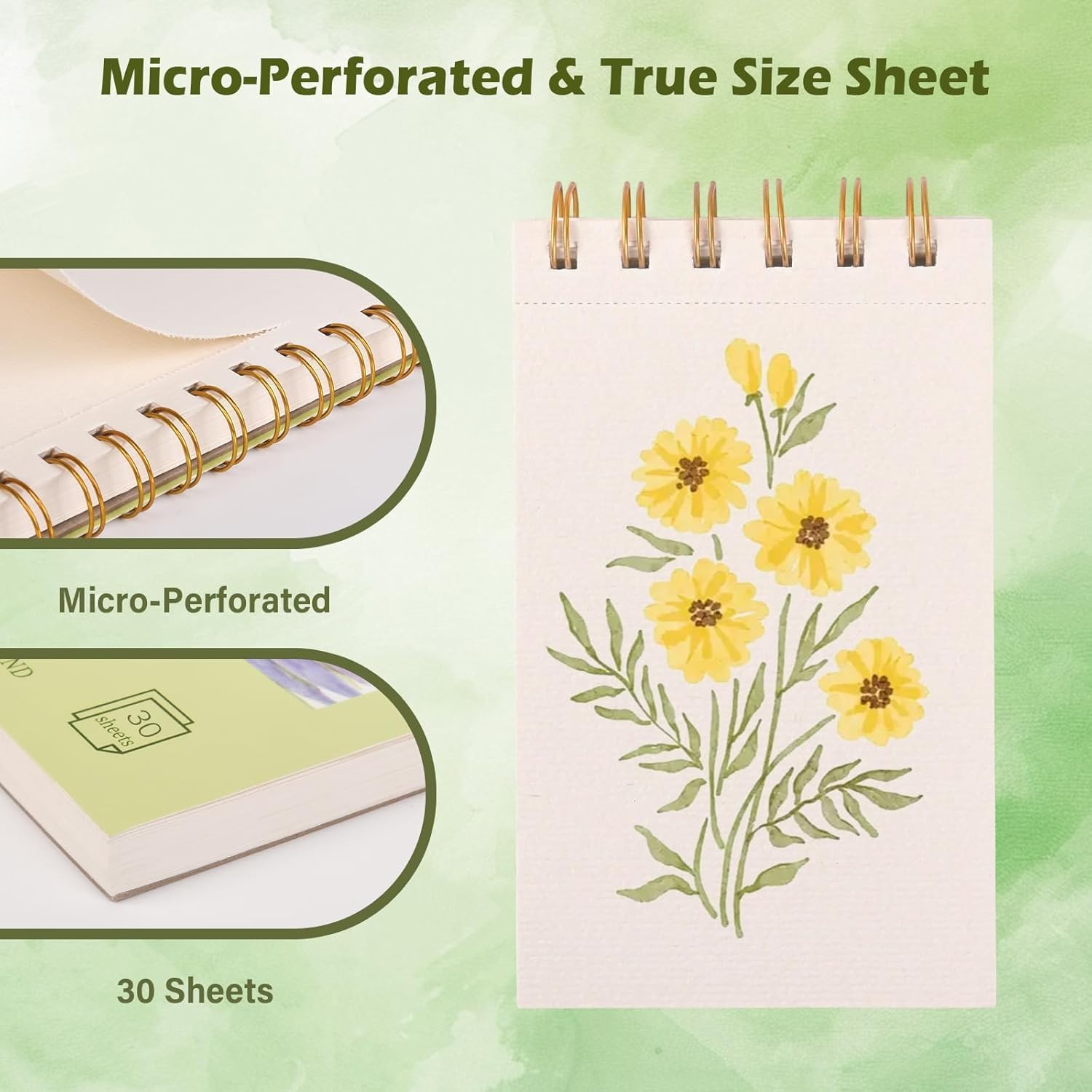 2-Packs Watercolor Paper Pad 3.5x5.5 Inch | 30 Sheets 140lb/300g,Spiral-Bound, Tear-Resistant & No-Bleed | Artist-Grade for Water Color Paper/Ink | Compact Travel Sketchbook (Adults, Students)