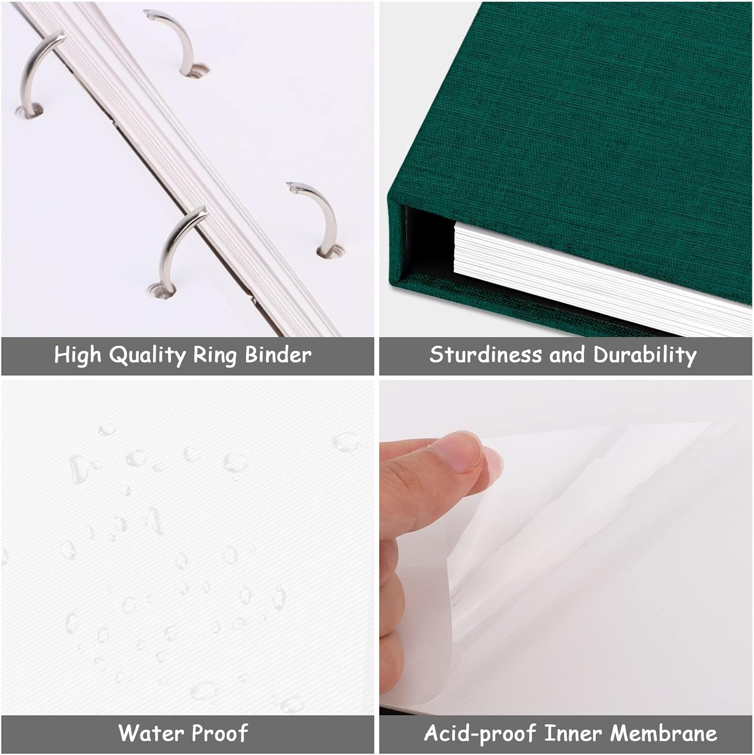 - 3 Ring Binder Photo Book: Initially contains 30 sheets (60 pages), plus 3-ring binding accepts refills ( inner page size:10.4'' x 9.5'', Ring spacing: 3.9''), The Inner Pages Can be moved, You can add extra inner pages freely, Our album can holds 50 sheets(100 pages)