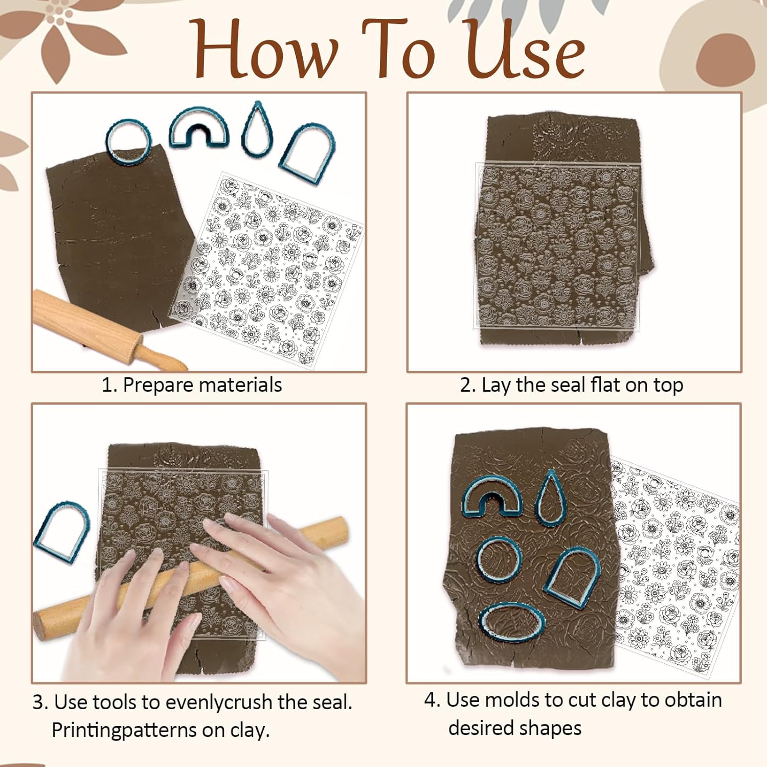 - How to Use: Roll the prepared polymer clay into flakes and place it on the clay texture mat and roll it on top to get a clear solid texture, and then colour it with a variety of colours. This clay texture stamp is beautifully detailed and is the perfect finishing touch to a clay plate