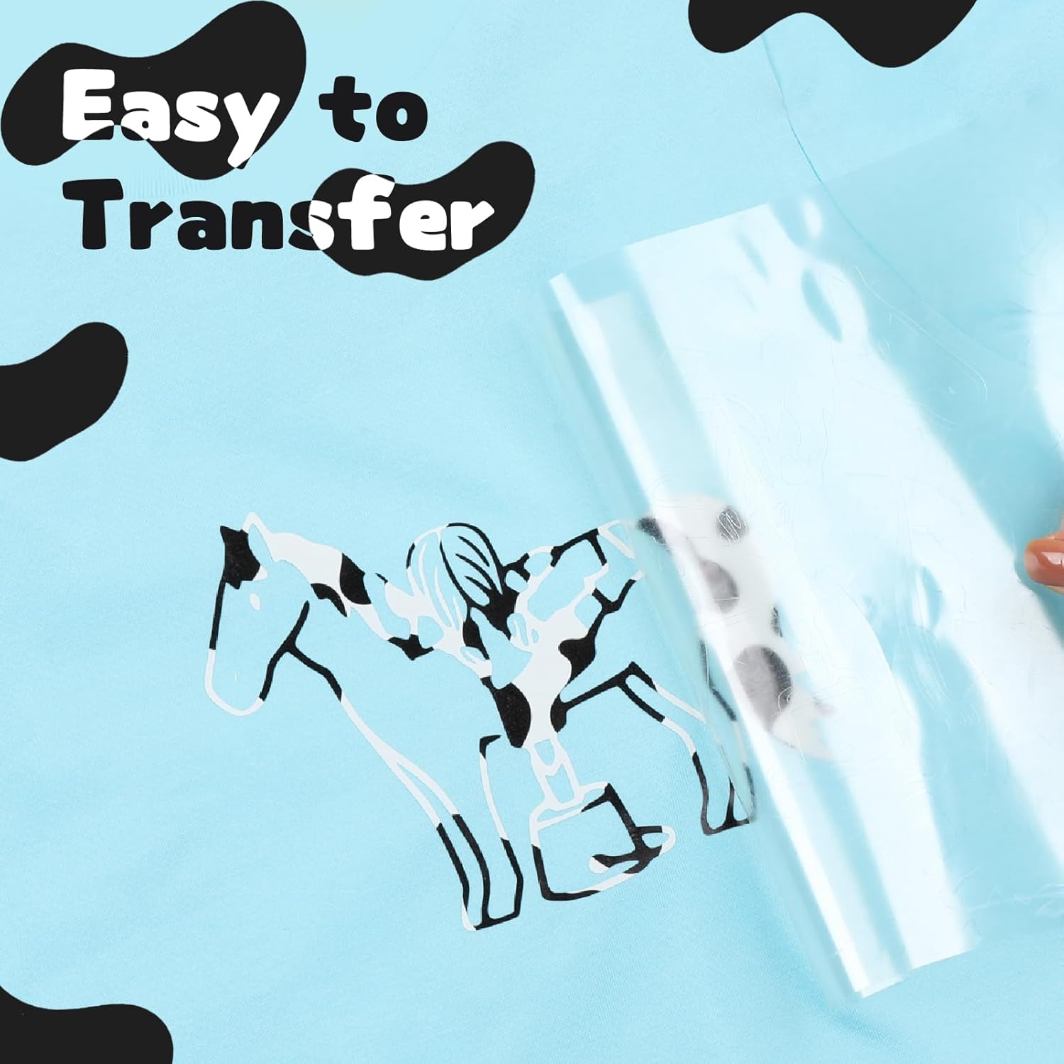 - π COW PRINTED ANIMAL PATTERNS π Our cow print heat transfer vinyl rolls come in 12" x 8ft and feature a stylish black and white cow print that will add a creative and artistic touch to your handmade products and help you stand out from the crowd.