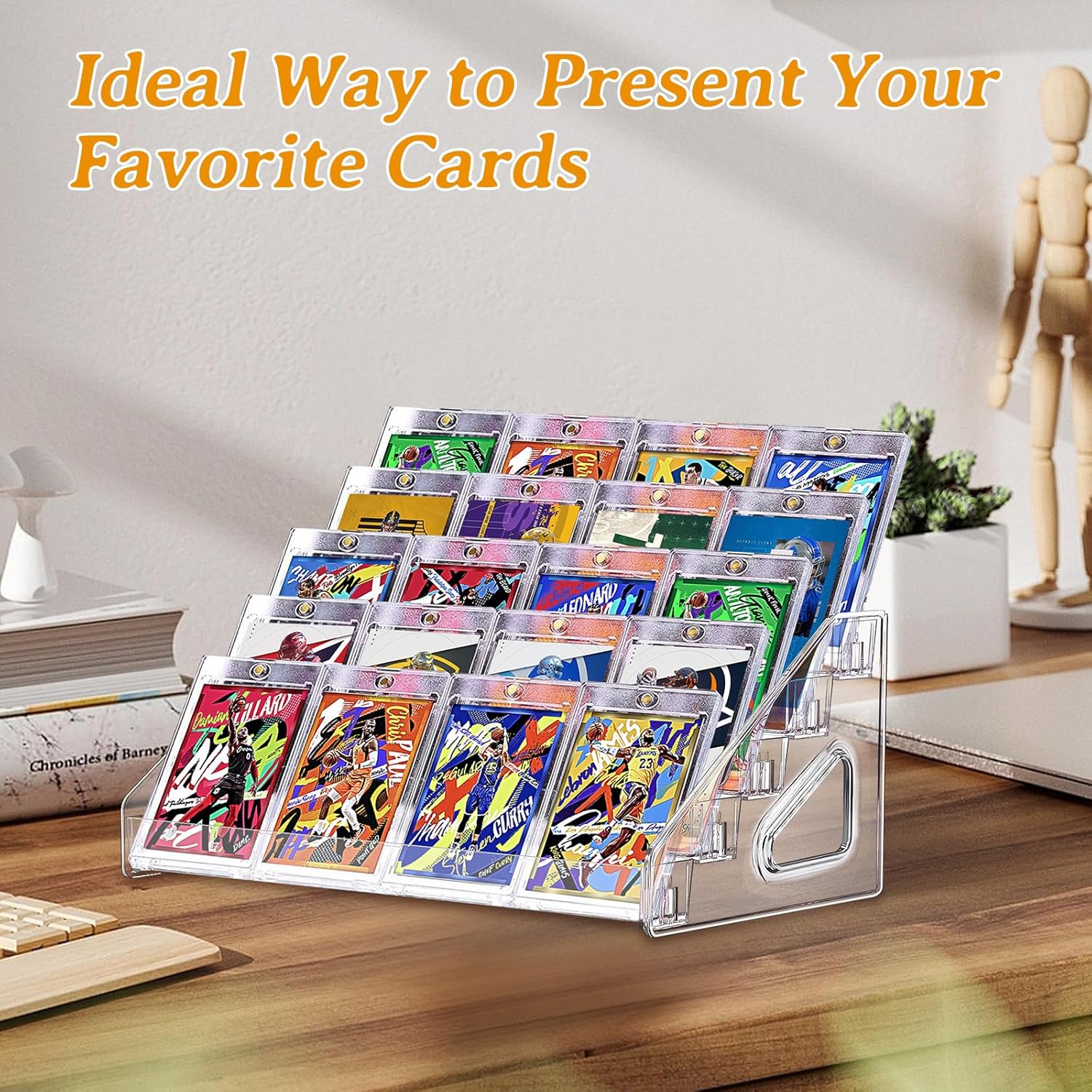 - Premium Acrylic Material: Crafted from high-quality acrylic, this 5-tier card display shelf securely holds your collection. The ultra-transparent trading card stand protects cards from dust and damage while adding modern style to your home or office.