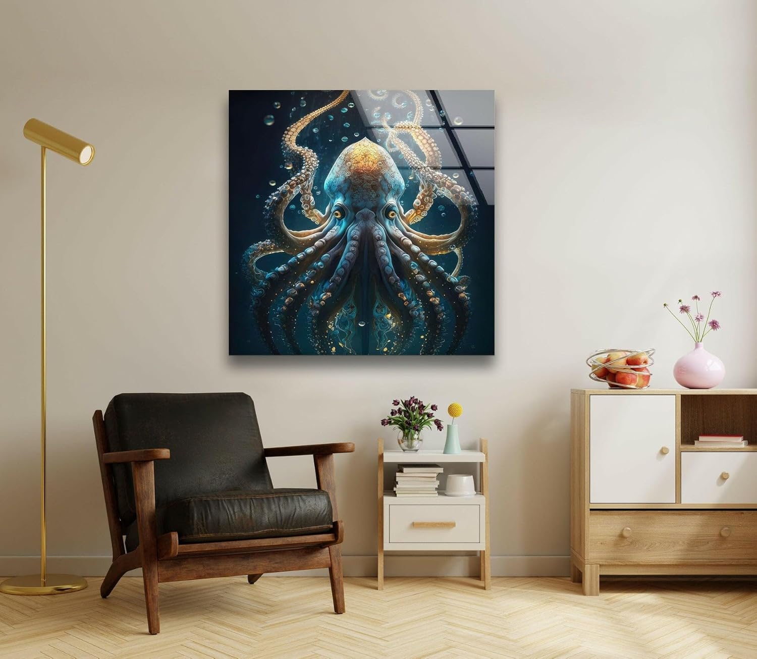 My Photostation.com 30Wx35.5H'' Underwater Blue Octopus Glass Wall Art Tempered Glass Printing Wall Decor Large Wall Art Wall Hangings