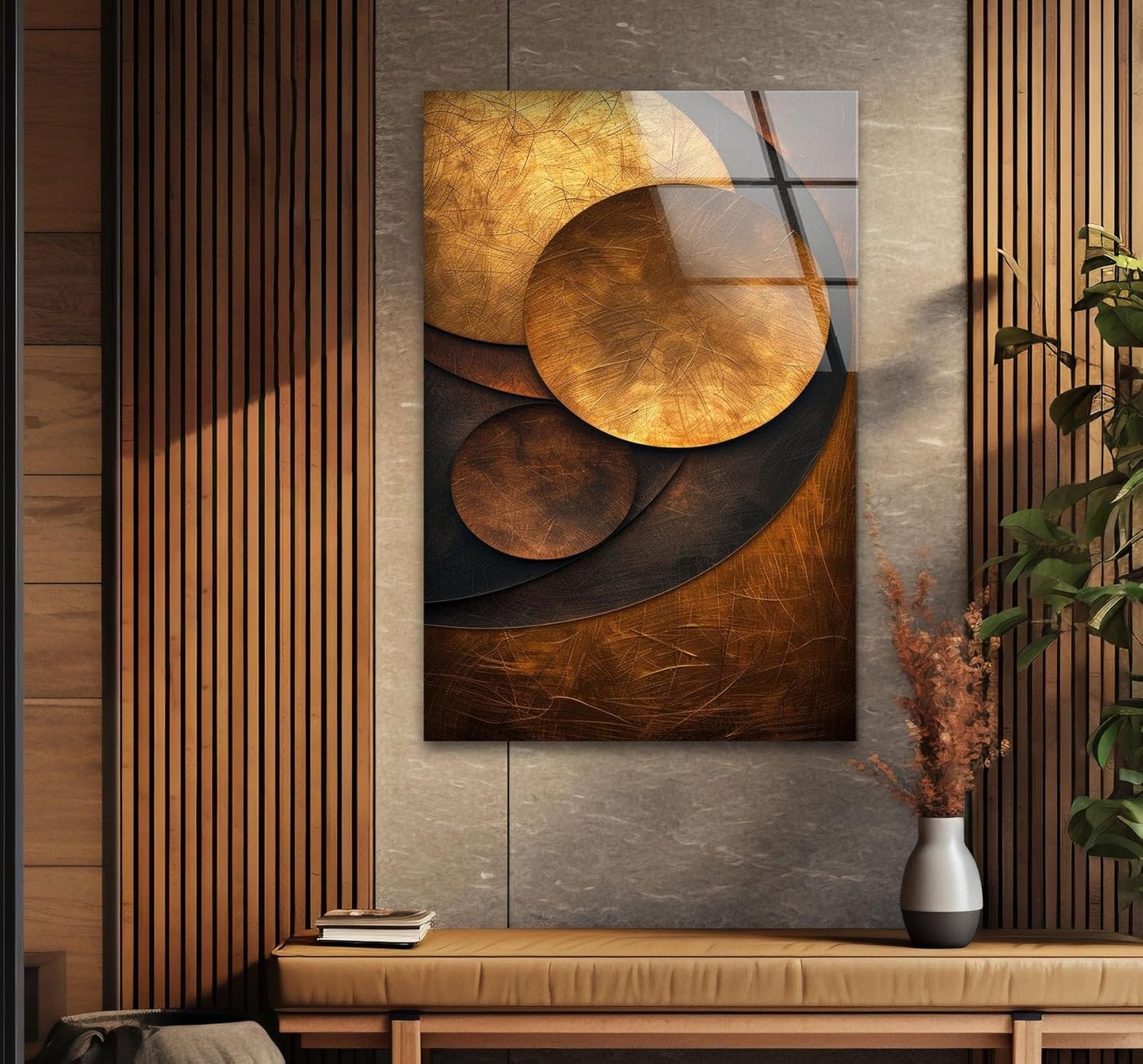 My Photostation.com 14Wx20H'' Bronze Art Deco Geometric Motifs Glass Wall Art Tempered Glass Printing Wall Decor Large Wall Art Wall Hangings